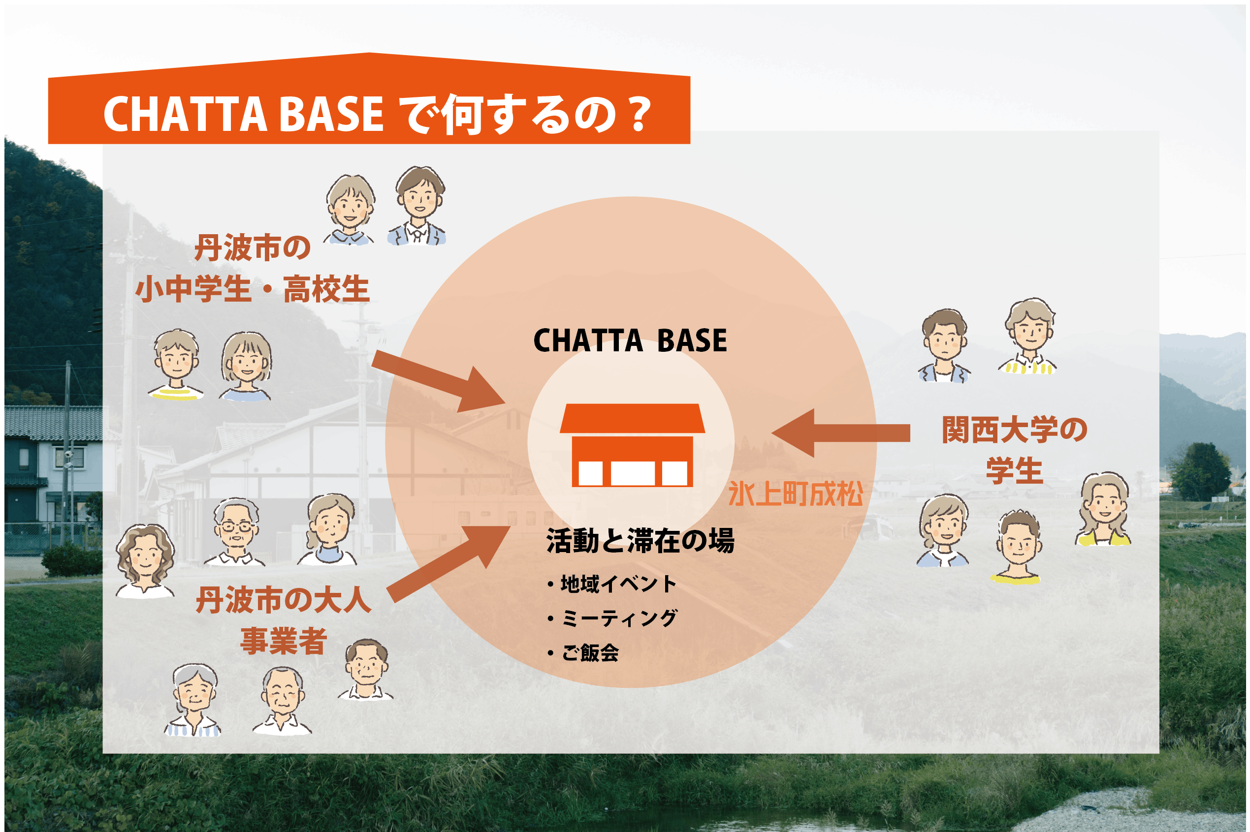 今回のプロジェクトは、氷上町成松の空き家を改修し、関西大学の学生をはじめ、地域の方々が交流したり常駐できる拠点〈CHATTA BASE〉をつくるために起案しました。