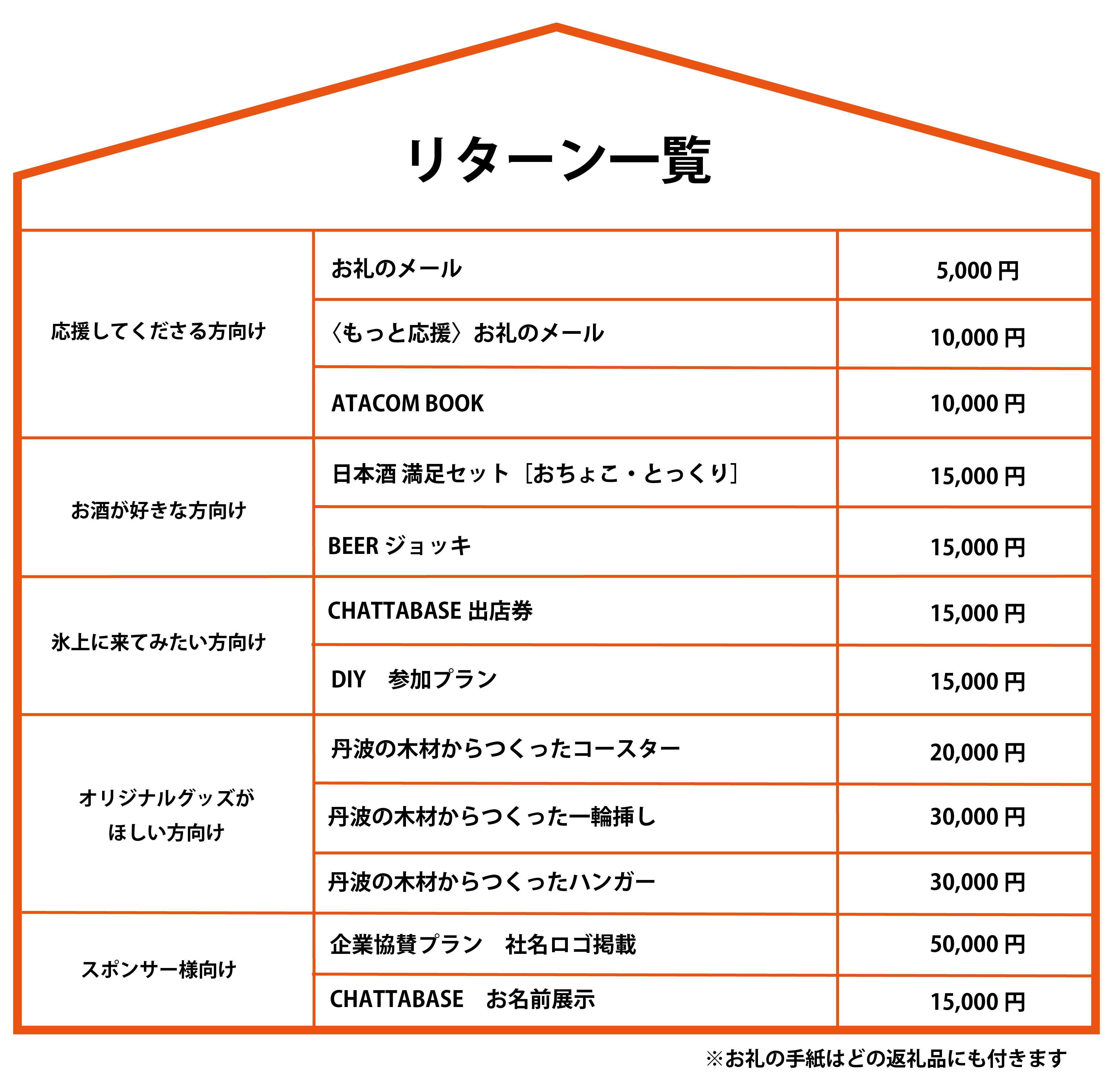 リターンには、氷上町の魅力を感じられるようなものや学生が丹精込めて作ったもの、愛宕祭りの際に学生と協力してツクリモノづくりに参加できるものなどをご用意致しました!