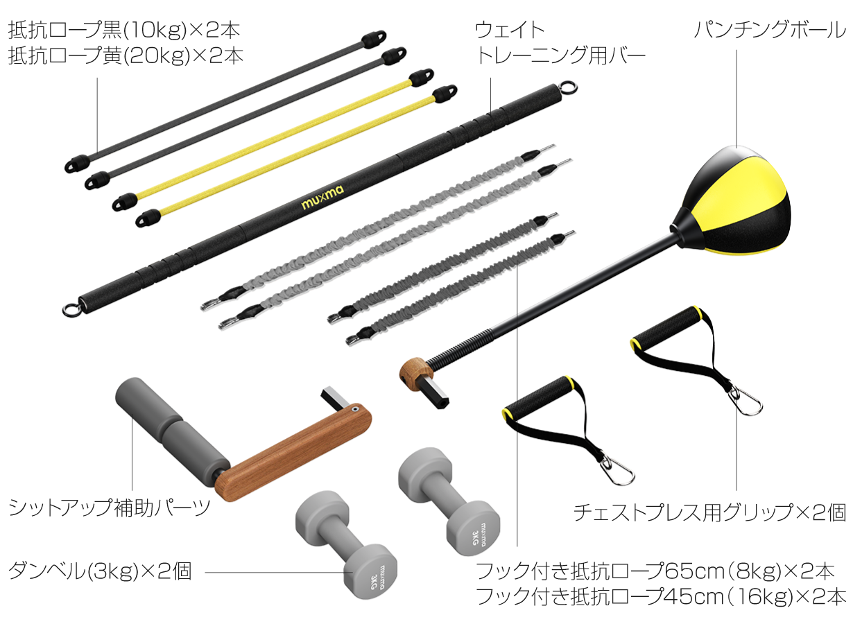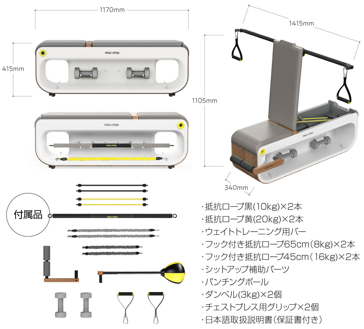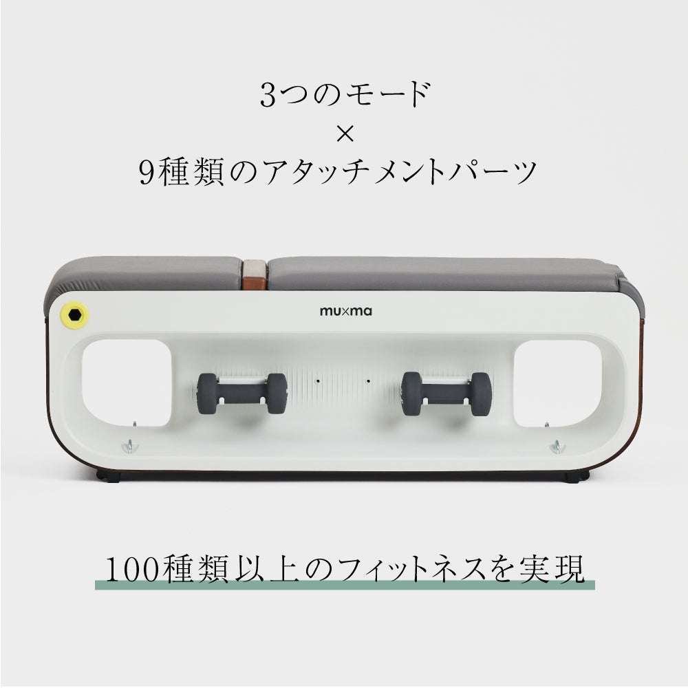 マシンを購入しても、様々な部位を鍛えることができない。サイズが大きくて場所を取るという悩みが...“mu×ma”はそんなお悩みを、全て解決する“自宅で運動”の決定版として開発されました!省コスト×省スペースで自宅をトレーニングジムにしてみませんか?