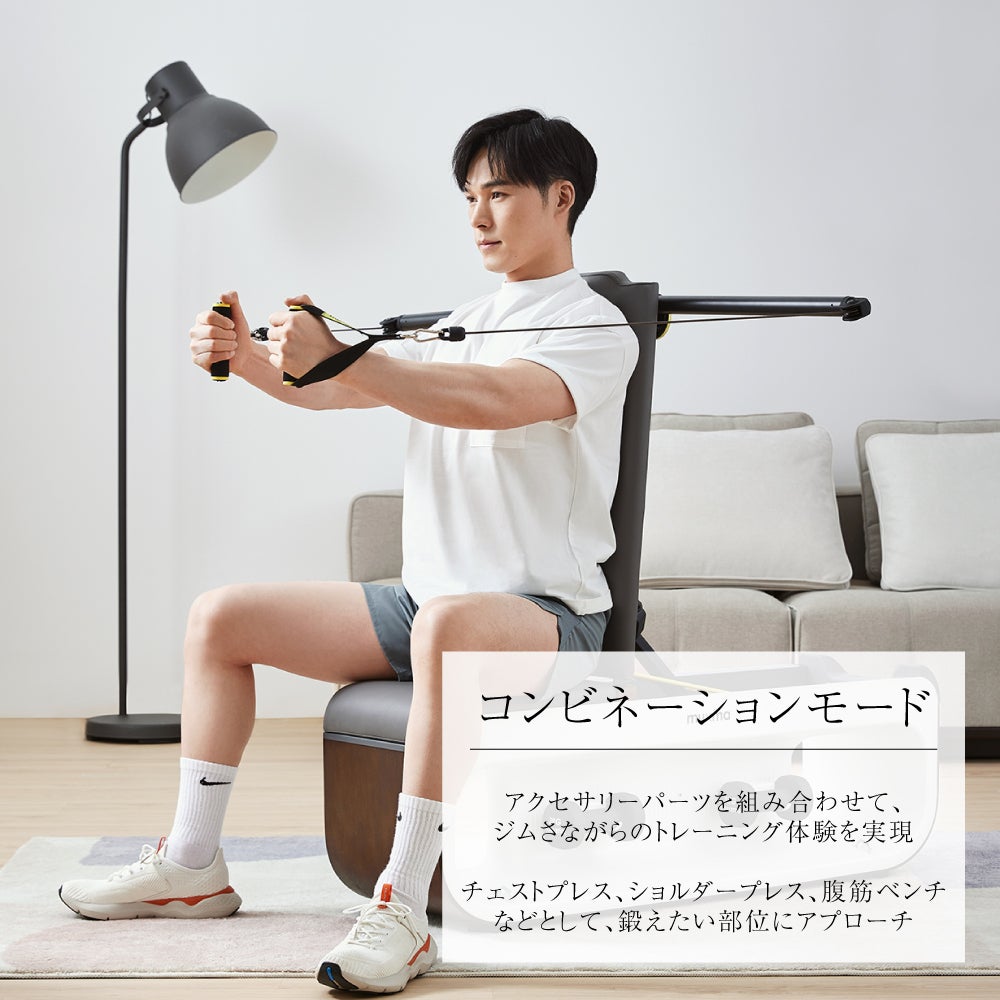 アクセサリーを組み合わせて、ジムさながらのトレーニングを実現。目的に合わせた最適なトレーニングが可能。普段では鍛えづらい筋肉も鍛えることができます。