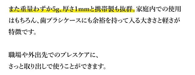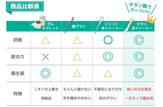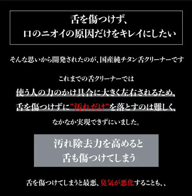 A:本製品を舌の上に置き、優しく2−5回ほど上下させて下さい。舌みがきは頻繁に行っても舌を傷つけるため、多くても1日1回ほどの頻度を推奨いたします。 毎日ご使用いただくと、少しずつ汚れが落ちますので根気よく続けてください。