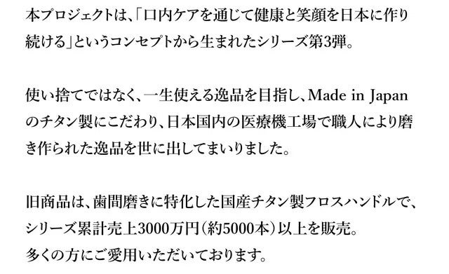 2024/07/31 20:00こんばんは!【口腔ケアブランド、Oral Rich 国産チタン舌クリーナー】をMachiyaキャンペーン価格で入手できる最後のチャンスです!当プロジェクトの一般販売開始はおそらく今年12月を予定しておりますので早くほしい方はお急ぎ下さい。 また、これまでのご支援、心より感謝申し上げます。皆様のおかげでここまで順調に進むことができました。 プロジェクトを成功させるために、一つ一つのご支援が大きな力となっています。本当にありがとうございます!! 残り4時間、プロジェクト終了は2024年7月31日23:59となります。 まだご支援いただいていない方も、ラストチャンスの4時間をお見逃しなく!最後の瞬間まで皆様の応援をお待ちしております。引き続きのご支援、よろしくお願いいたします。 もっと見る