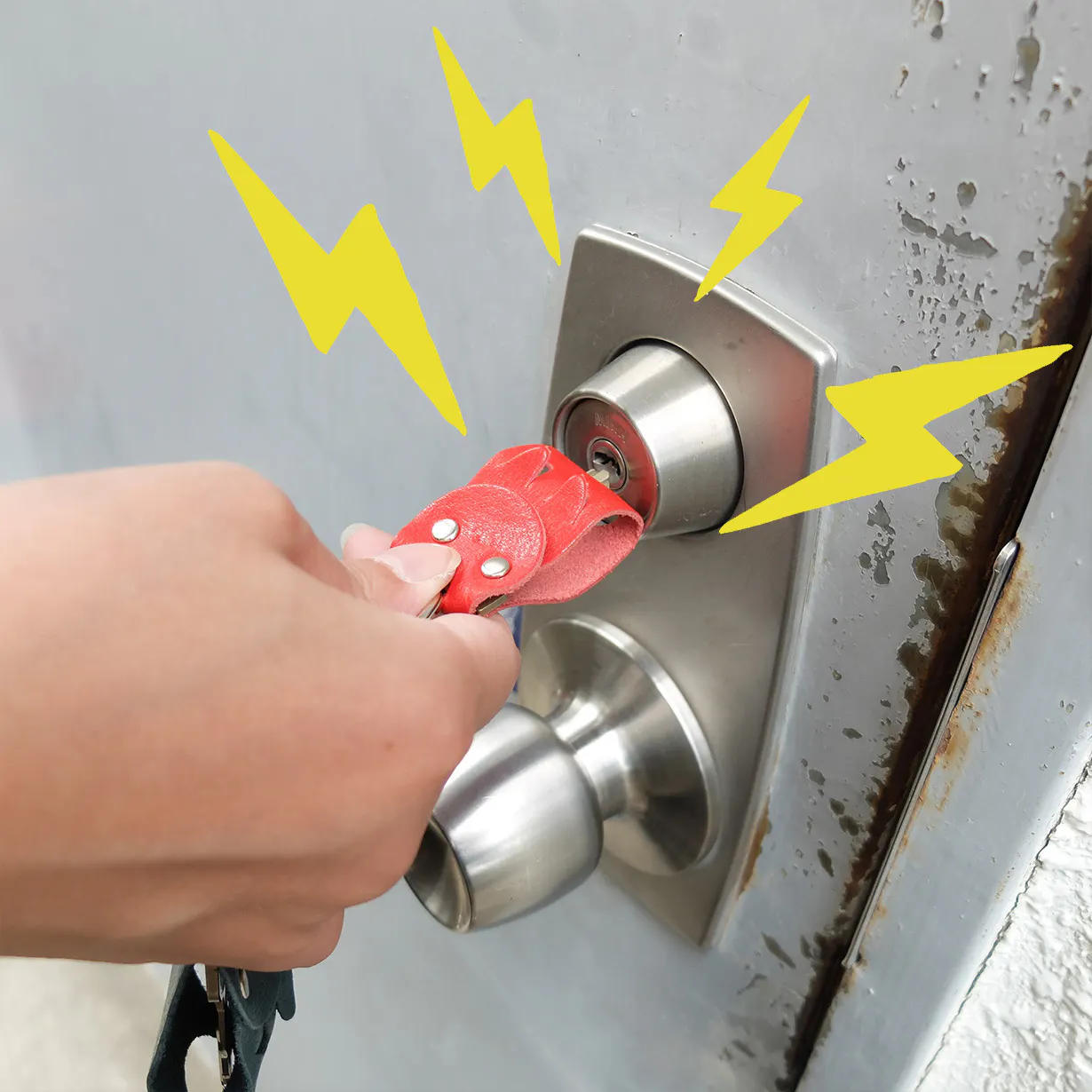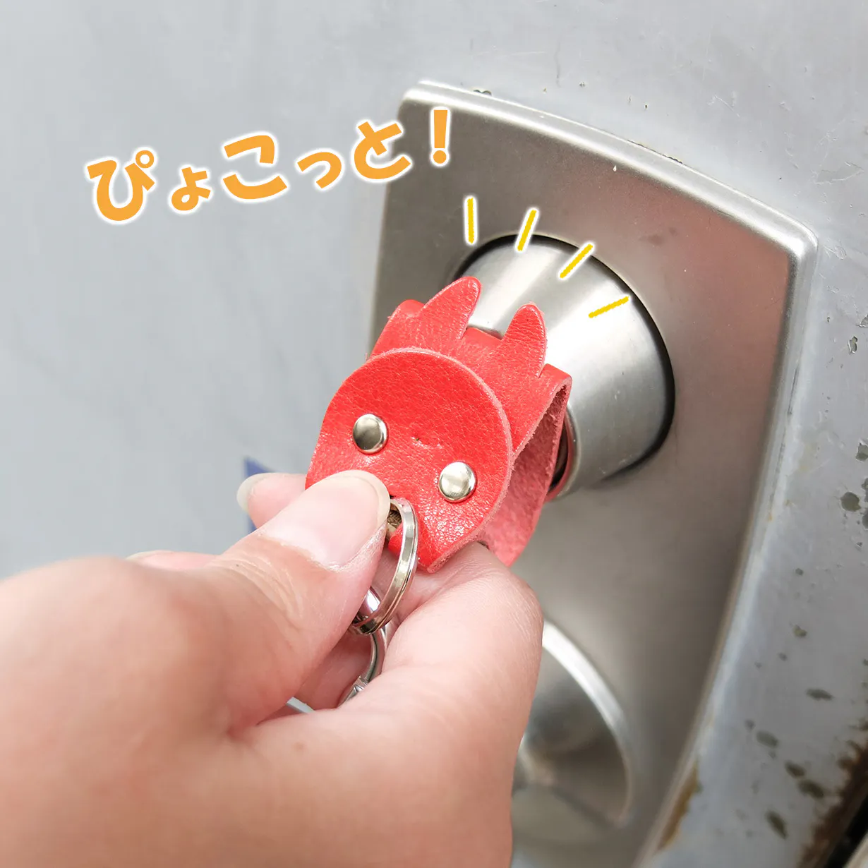柔らかい革ですから、そのまま鍵穴に差し込めば、くにゅっと曲がって鍵が入ります。色々と利点はありますが、「かわいい」の一言に尽きます。