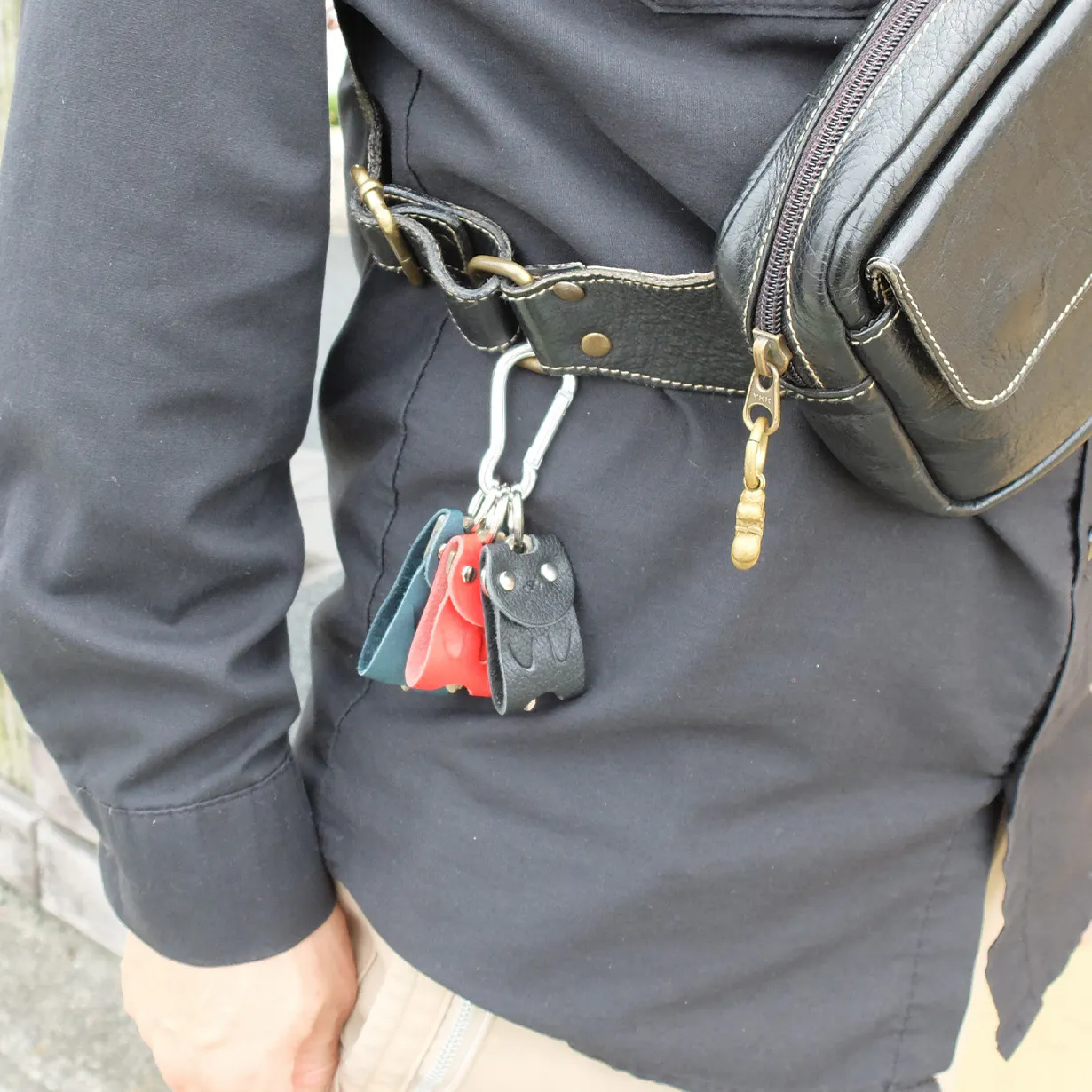 腰に釣ったり、バックの中に入れてジャラジャラ音が気になることはありませんか?革ですっぽり覆っているので音がしません。