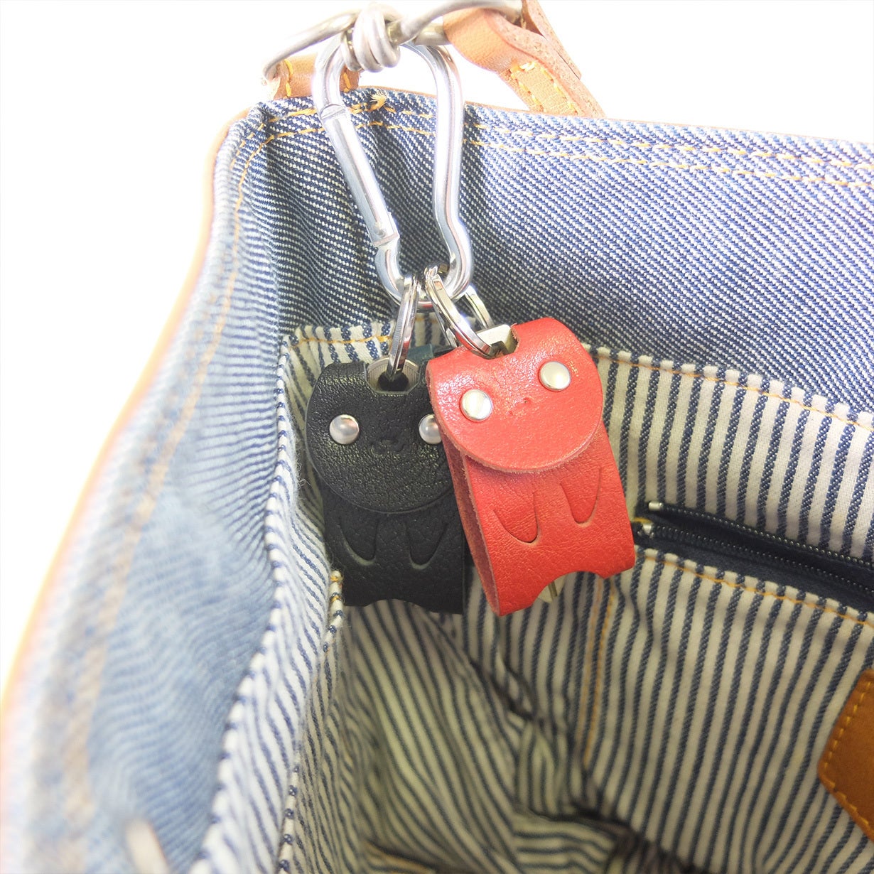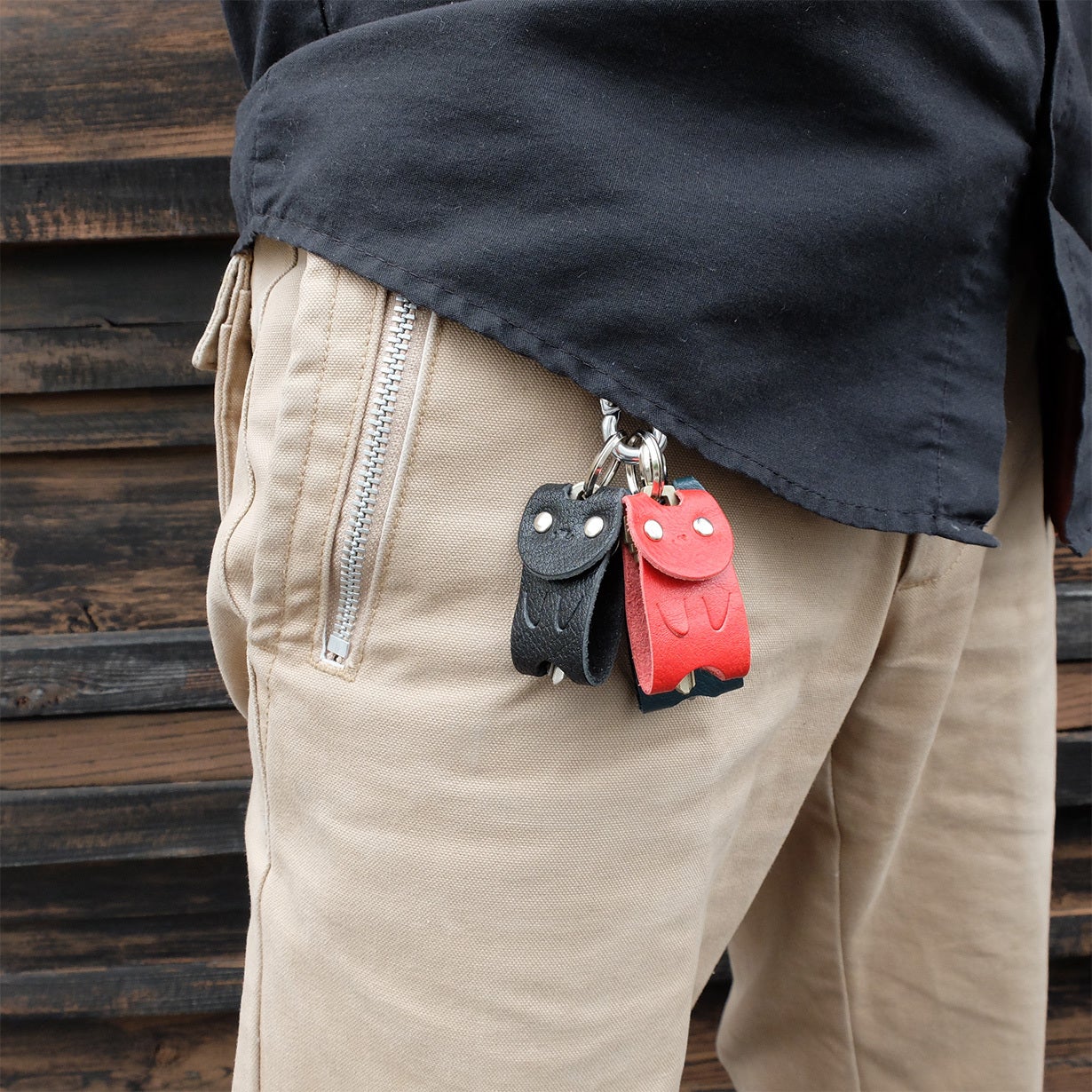 腰に釣ったり、バックの中に入れてジャラジャラ音が気になることはありませんか?革ですっぽり覆っているので音がしません。