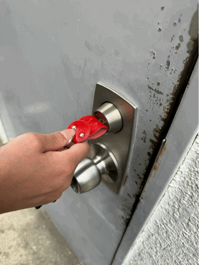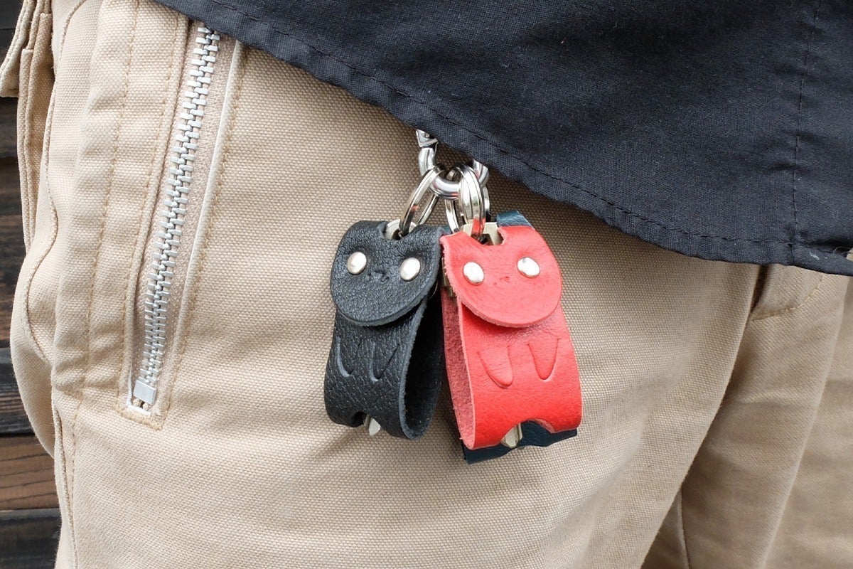 柔らかい革ですから、そのまま鍵穴に差し込めば、くにゅっと曲がって鍵が入ります。色々と利点はありますが、「かわいい」の一言に尽きます。