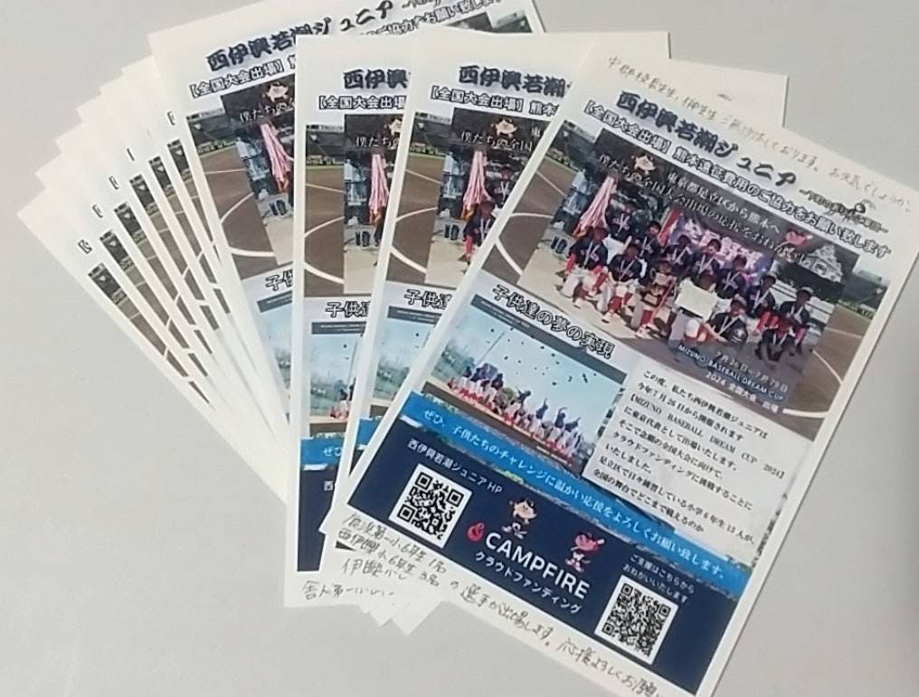 ハガキに当プロジェクトを印刷し郵送しました。