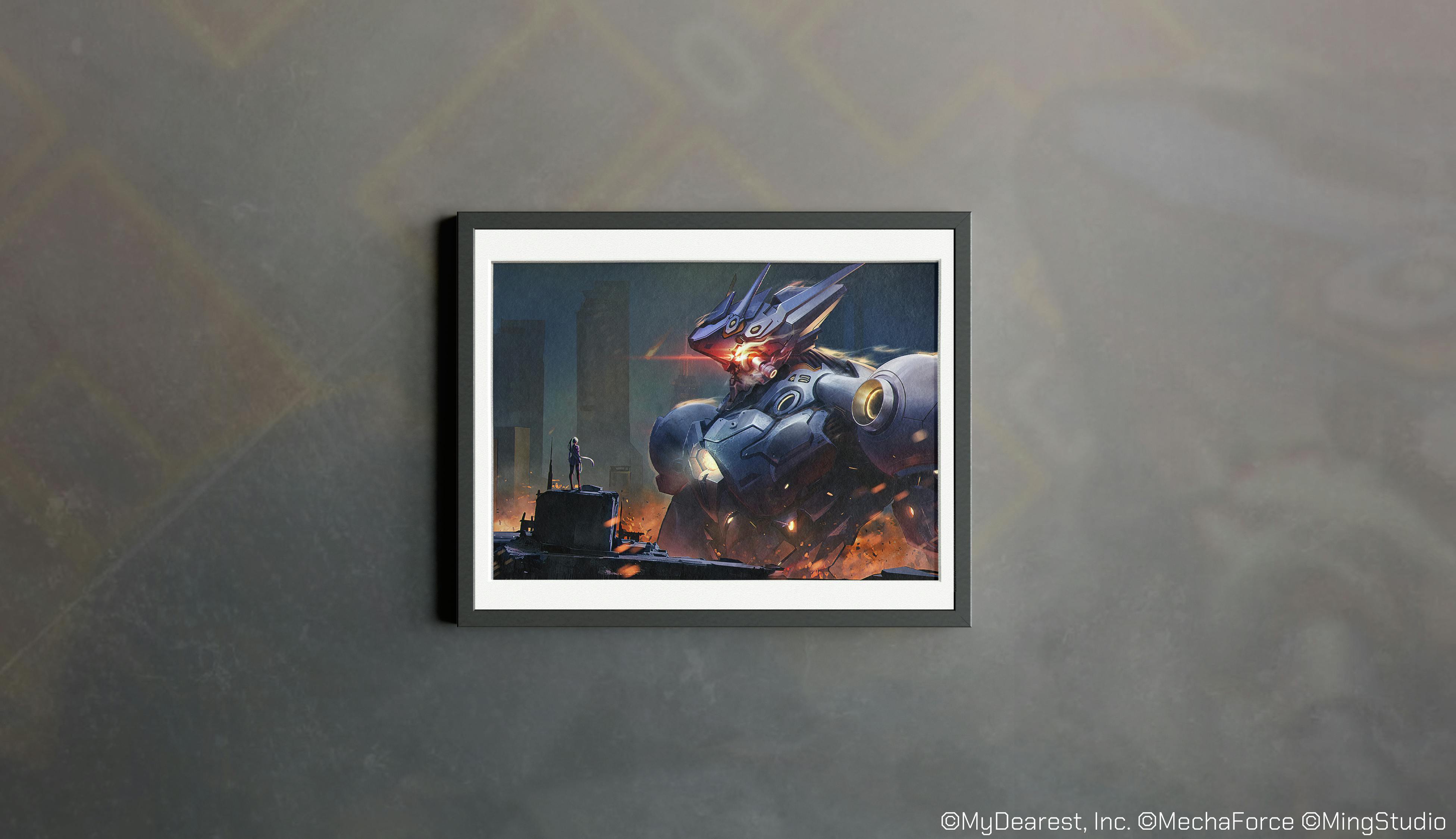 「Mecha Force -メカフォース-」メインキービジュアルの複製原画です。