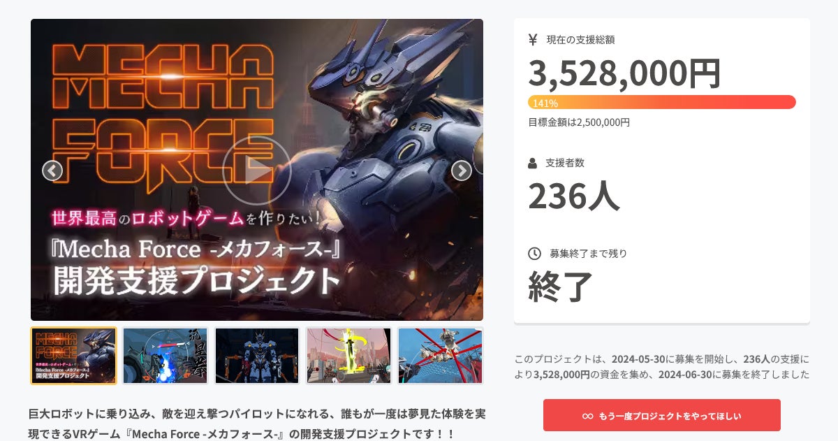 みなさんこんばんは!いつも「Mecha Force -メカフォース-」を応援いただきありがとうございます!MyDearestプロモーションチームの大野です。10月17日より、Steamストアにて「Mecha Force -メカフォース-」の最新の体験版が遊べるようになりました!リリース予定の本編にかなり近い形での仕上がりで、本編の初期体験をお楽しみいただけます。▼「Mecha Force -メカフォース-」 ストアページ/無料デモ(体験版)はこちら!https://store.steampowered.com/app/3193760/Mecha_Force/既にMeta Quest版で先行プレイをご体験いただいた皆さまにとっては、起動しますとタイトル画面のビジュアルが更新されていたり、ナビゲーターのマキニーラのグラフィックが更新されていたりと、作品が完成に向けて着実に進化しているのを感じられると思います。今回の体験版もあくまで開発中の物であり、リリースの際にはまた違った見た目・内容となる可能性がありますが、その最中を楽しむのも本プロジェクトにおいて真に「ゲーム制作に参加している」という意味で格別な体験になるのではないでしょうか。そしてもしプレイしていただきました際には、ぜひSNSでハッシュタグ「#メカフォース」で感想を教えてください!!!!リリースに向けて、リワードのアイテムに関しても引き続き制作が進行中です。こちらも良いタイミングを見て皆様に最新情報をお届けできればと思います!引き続き「Mecha Force -メカフォース-」を応援いただけますと幸いです!どうぞよろしくお願いいたします。