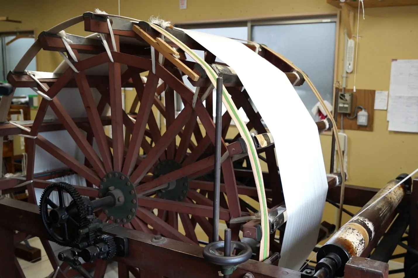 現在では品種改良された養蚕の絹糸を撚糸した綺麗な糸を使用しています。