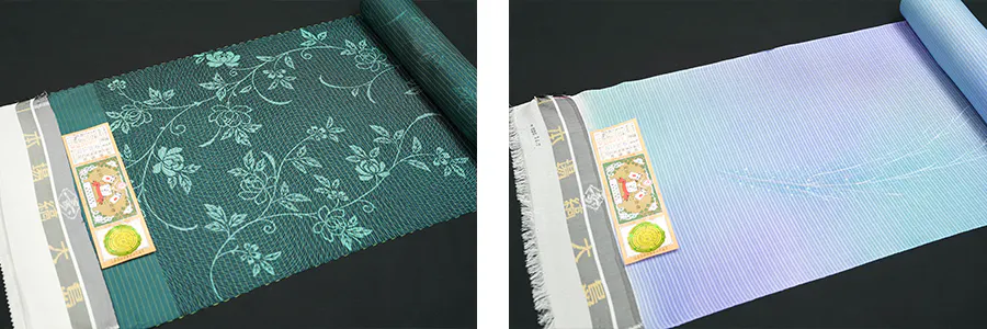従来の大島紬の反物だけではなく、ムガシルク、タイシルク、与那国紬糸など新しい素材への挑戦や、京都の一流メーカーとのコラボによる染めなど、伝統にとらわれない新しい生地の開発にも挑戦し続けています。