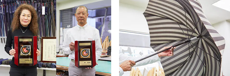 今現在は日本の職人の作る傘を中心とし、自社で傘工房も立ち上げています。 中でも職人の育成に力を入れておりまして、私自身も東京洋傘の伝統工芸士の8人のうちに選ばれています。