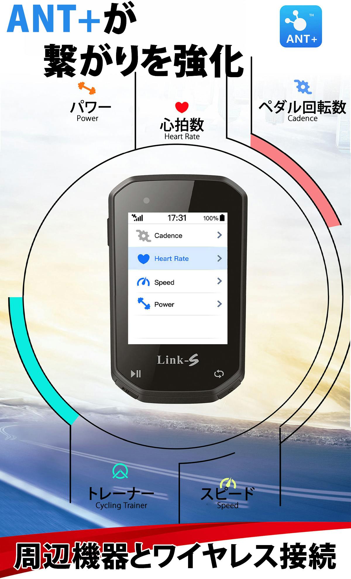 ※ANT+技術は、Link-sが他のデバイスとコミュニケーションをとることを可能にします。