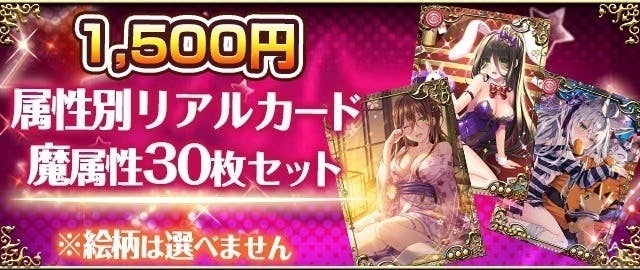 ゲーム内キャンペーンなどで入手することができたリアルカードから、魔属性のものを30枚セットにしました。絵柄を選ぶことはできません。