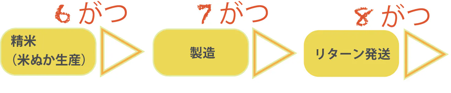 そのときにようやく米ぬかができます。米ぬかの大半は田んぼにおかえししますがその一部を米ぬか石鹸の原料としています。