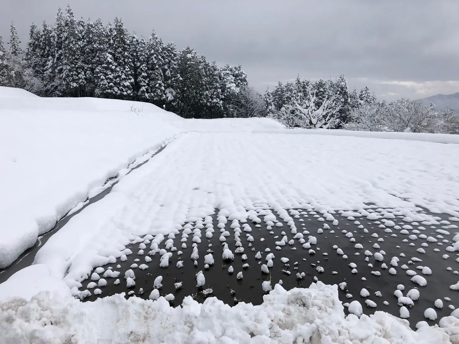 また、冬の積雪の時期には除雪車が除雪した雪が水路に詰まって田んぼに水が入らないことは日常的に起こるため、冬も毎日田んぼの様子を見に行きます。詰まっているときはスコップで雪を掘り出して水を流すのですが、その際の除雪と田んぼへの配水の量を考えないと詰まっていた雪をどかすことで新たに水の氾濫が起きてしまい、田んぼの下の集落の方々にご迷惑をかけてしまうことになってしまいます。これについてはいつもかなり気を張って気をつけないとと自分に言い聞かせています。