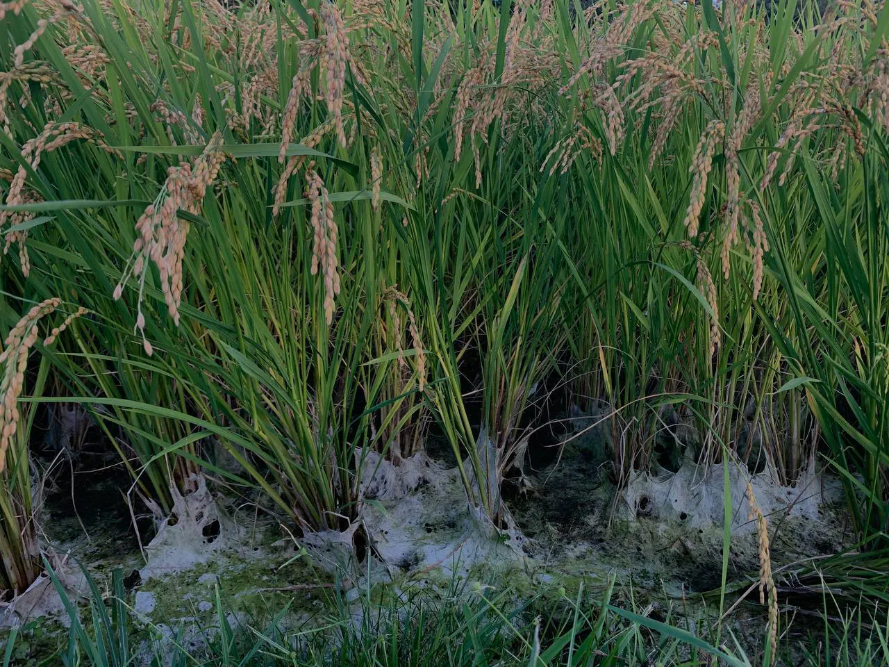 もうすぐ稲刈りを迎える田んぼは収穫作業が終わるまでのこの時期だけ圃場の水を抜き土を乾かしていきます。そのとき姿を見せてくれるのがこの糸状菌という菌で、土壌の中で植物と共生しているといわれます。