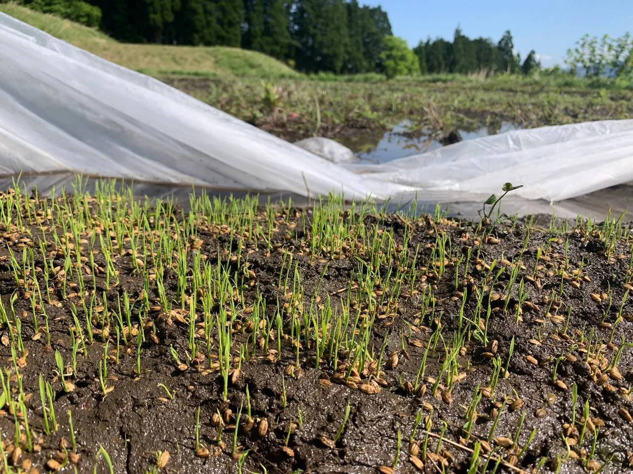 育苗についても圃場の中に畝を作りそこに種籾をおろしたり、箱に種籾まいて育苗する方法や、直播をしたり、昨年の稲刈り時に落ちた種籾が自然に発芽するのを楽しんだり様々な方法を試します。