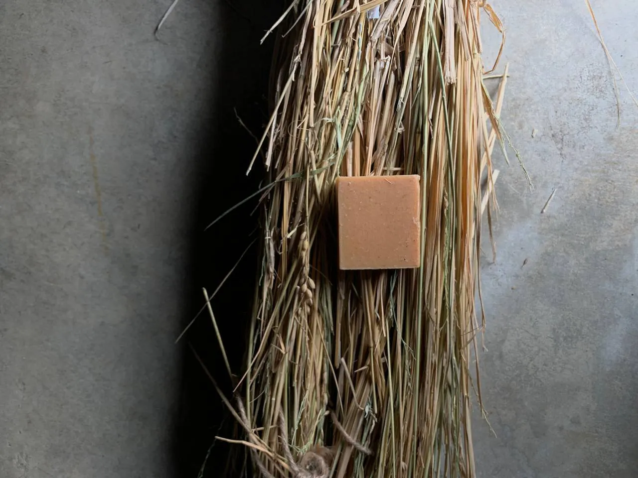 シシ七十二候の自然農の田んぼで収穫した米ぬかとココナッツオイル、そしてオーガニックシア脂などの天然由来成分で作られた固めの石鹸です。日本で古来より使われてきた米ぬかには、ビタミンやミネラルなど多くの栄養素が豊富に含まれます。