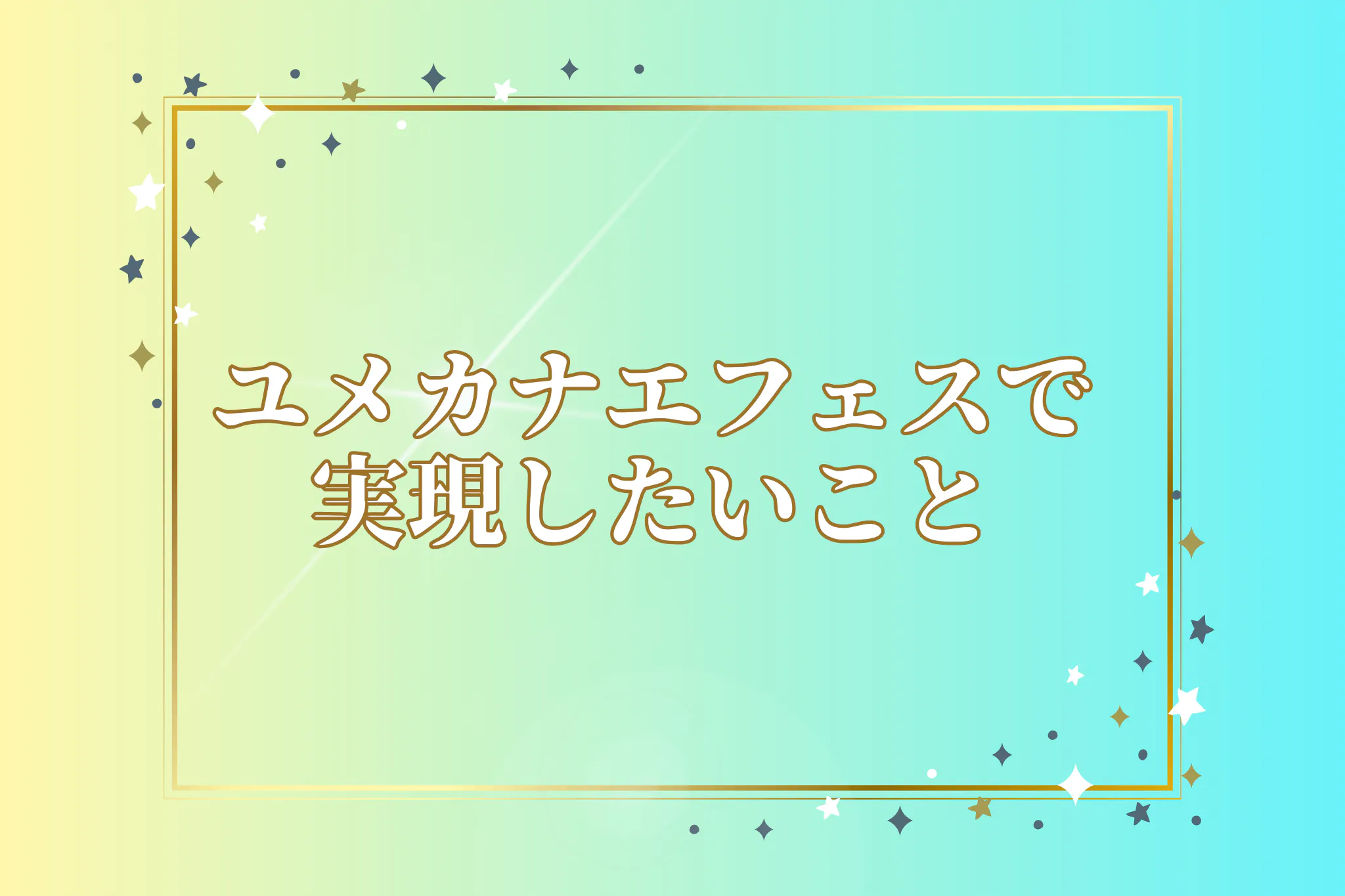 ユメカナエフェスでは、音楽と動物愛護を融合させたチャリティーフェスを開催し、繋がること、そしてたくさんの方に見ていただけるステージを設けることから、一人一人の夢の実現を目指し、さらに、動物の理由なき殺処分ゼロに向けて、動物愛護団体や個人ボランティアさんの活動を支援し、当日は動物保護団体の譲渡会やバザーを開催し、動物たちに新たな家族を見つける機会・犬猫の保護に関わる資金集めの場を継続して提供したいと思っております。