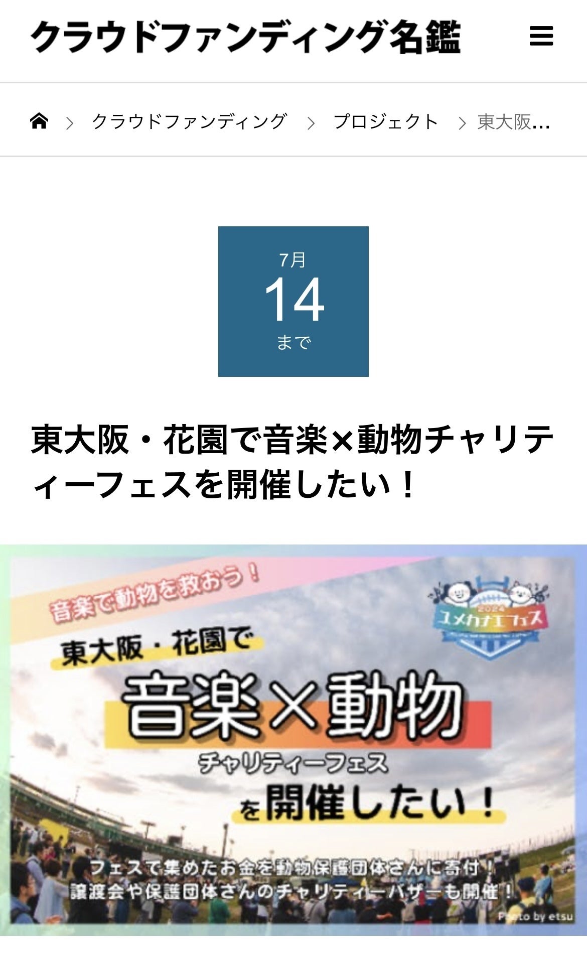 いつも応援してくださっている皆様そして初めましての皆様こちらの活動報告のページをご覧くださりありがとうございます!ユメカナエフェス実行委員代表 Miranda Otsujiです!本日は皆様への活動報告がたくさんあります!まず一つ目は、昨日、犬の幼稚園『MAOli DOG』さんにご紹介いただいた、とてもお優しい理事長さんについてのご紹介です♪昨日は投稿確認を忘れてしまっていたのでご紹介できませんでしたが、こちらへの投稿OKとの確認ができましたので、皆様にご紹介させていただきます♪株式会社ケーピーエスの代表取締役であり、一般社団法人パートナードッグタウン協会の、創業理事長・現在相談役である【柳原さん】と、お繋ぎいただきお電話させていただいておりました◎40年間ペット業界にて従事されており、「わんこさんの幸せ」をパクパク、トコトコ、しっぽフリフリの犬幸寿命20歳(人間年齢約100歳)とし、商品やサービスを開発、無料セミナーなどを開催されております◎2050年には日本のわんこの平均寿命20歳を目指してらっしゃるそうです! また、2014年に鶴見緑地にて、保護犬の譲渡施設、及びドッグランを常設した、『パートナードッグタウン』を開園され、【人とペットの笑顔あふれる共存社会の創造】を目指し殺処分が無くなる世の中に貢献したいと活動を開始されたそうです!以前、鶴見緑地公園に訪れた際に、パートナードッグタウンの存在を何度か拝見しておりまして、ずっと関わりたいと思っておりましたのでMAOli DOGさんにご紹介いただけてお話しすることができて嬉しいなぁと思っております♪ぜひ足を運んでみてくださいね!↓ケーピーエスhttp://www.kps-net.co.jp/↓パートナードッグタウンhttps://www.pdt.or.jp/----そしてそして!2つ目は本日お昼にまたまたMAOli DOGの田中さんからのご紹介で『クリエイターズスクエア』さんとお会いしてきました!スマホでお送りした写真がそのまま印刷できるというお店でMAOli DOGの田中さんもよく作ってらっしゃるとのことで現物をたくさん見せていただきましたが皆様ご自分の愛犬や愛猫のお写真をトートバッグやポーチ、コースターにしていたりはたまた、娘さんが描かれたお絵描きをサコッシュにされていたりと、、、!世界に一つだけしかないとっっっっても可愛いグッズがその日中に作れてしまう、そんな素敵なお店『クリエイターズスクエア』さんがユメカナエフェスにお越しくださることになりました♡♡19日、20日、どちらになるかまだ未定ではありますが...!ぜひ皆様作りたいグッズを想像しながら19、20日遊びに来てくださいね♪↓ホームページhttps://www.creators-sq.com↓インスタのお名前は『ぷりんとイズム』で投稿されております◎https://www.instagram.com/print_ism?igsh=MTFhbGx4eWs5YzQxNw==---そして最後に、本日のクラファン毎日ツイキャス配信では、ユメカナエフェス実行委員のKENGさんと山田尚史さんのお二人にご出演いただきました!!お2人は、『ふみちゃんけんちゃんのごきげん生放送vol.51』後の配信登場とのことでしたので、「もしかしてお疲れかな...?」と思ってお電話を繋げたところ、第一声から山田尚史さんの「ミラ子ーーーーーーー!!!!!!」の声でお迎えしてくださりめちゃくちゃ顔が緩みました(笑)(笑)クラファンをする意味コンセプト、そして2年間出演くださっている山田尚史さんに過去2年のユメカナエフェスの移り変わりなどのお話をお伺いしたりと深〜い深〜い、そして愛情が溢れまくっていた30分でした!本当に本当にこのフェスを大切に想ってくださっている方がいらっしゃることがすごく嬉しくてその方々のあたたかさがひとつ残らずフェスで見てもらえるように当日安心してフェスができるように企画運営・そしてまずはクラファン達成を目標に頑張っていきたいと思いますので今後ともよろしくお願いします!ご支援・拡散のご協力何卒よろしくお願いします!----ユメカナエクラファン 11日目の結果報告本日の目標達成率27%のところ惜しくも昨日と金額もお気に入り人数も変わらず...1日のこの2%の積み重ねが大事なのですがなかなか毎日うまくはいかず...ですが明日も明後日もライブなのでたくさんチラシを印刷して引き続き頑張っていきたいと思っております!!ご支援、そして1日1回の拡散のご協力よろしくお願いします!
