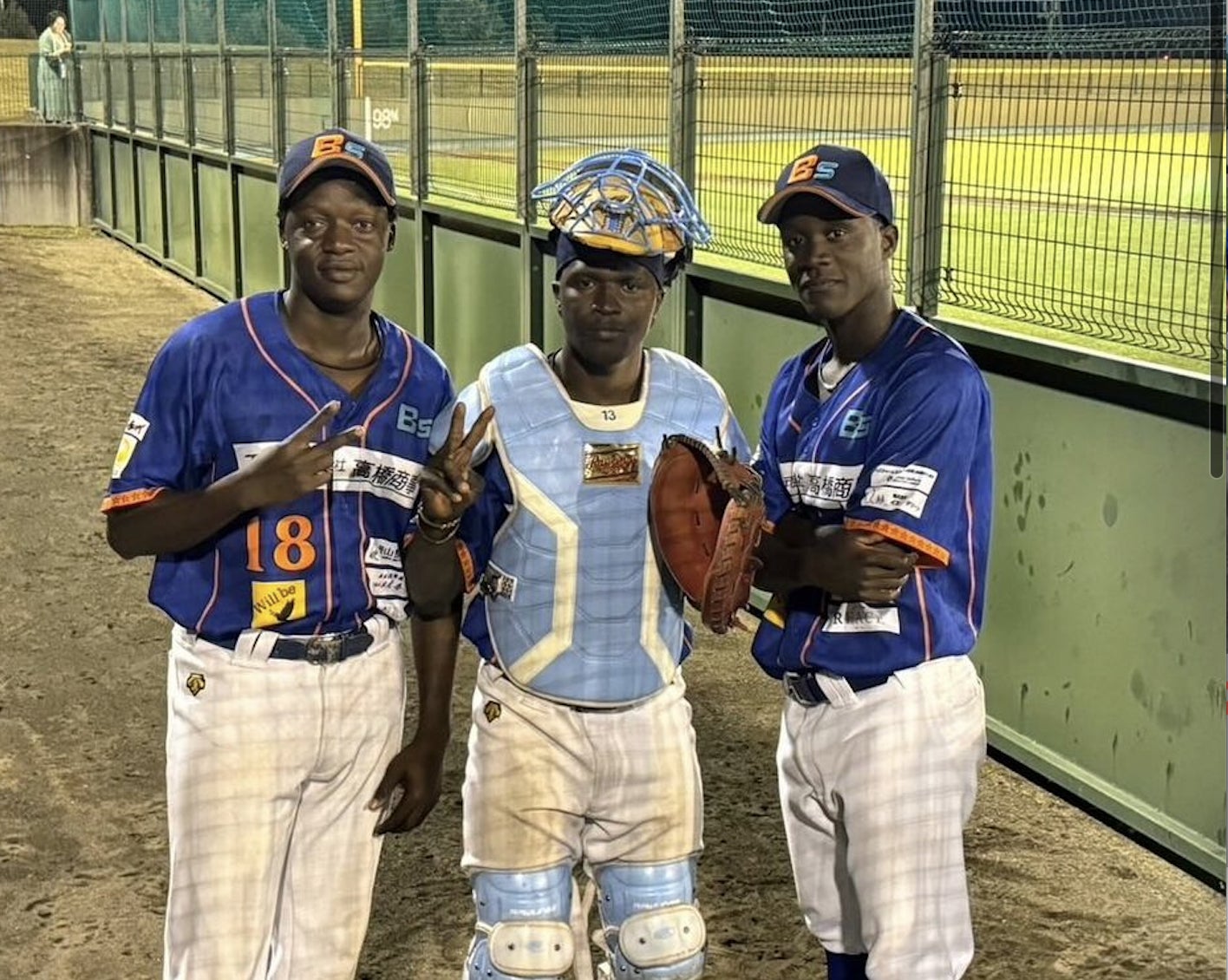 左からカベンゲ投手・カスンバ捕手・カトー投手