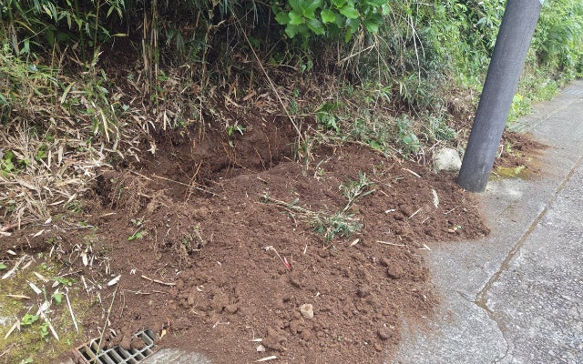 イノシシは土手を崩したり、木の根を掘ってしまいます。