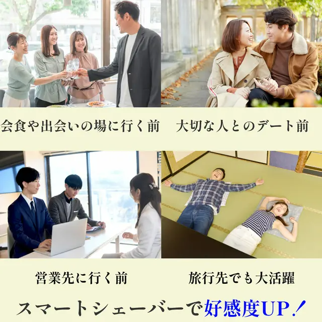 ✅仕事後に気になる人とのデートや合コン、婚活パーティーなどの直前に、女性のお化粧直し感覚でササッと整えて好感度UP!夕方ボツボツ髭が出てきている状態と、剃りたてでは清潔感がガラリと変わります。驚く程に音が小さく、人目が気になりにくいので、あらゆる所で使用出来ます。ザワザワしている空間だと音が殆ど聞こえないレベルです。
