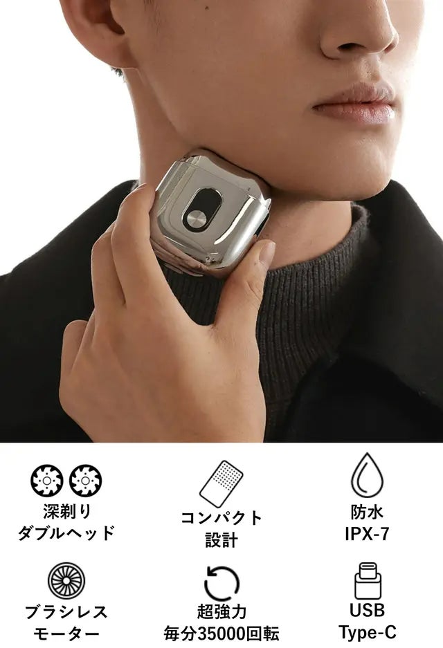 近年男性の美意識の高まりの中、プライベートだけでなく仕事にも「見た目・身だしなみ」が重要になってきています。そんな中、男性の髭は朝剃っていても夕方になると青髭が目立ってきてしまいます。朝忙しくて剃る時間が無かった!なんて事もあります。そんな悩みを改善させるために、いつでもどこでもポケットサイズに収まり、ササッと処理出来るような便利な髭剃りをご紹介!いつでも清潔感のある最高の自分を保つ!そんなテーマを元にこのスマートシェーバーが開発されました!