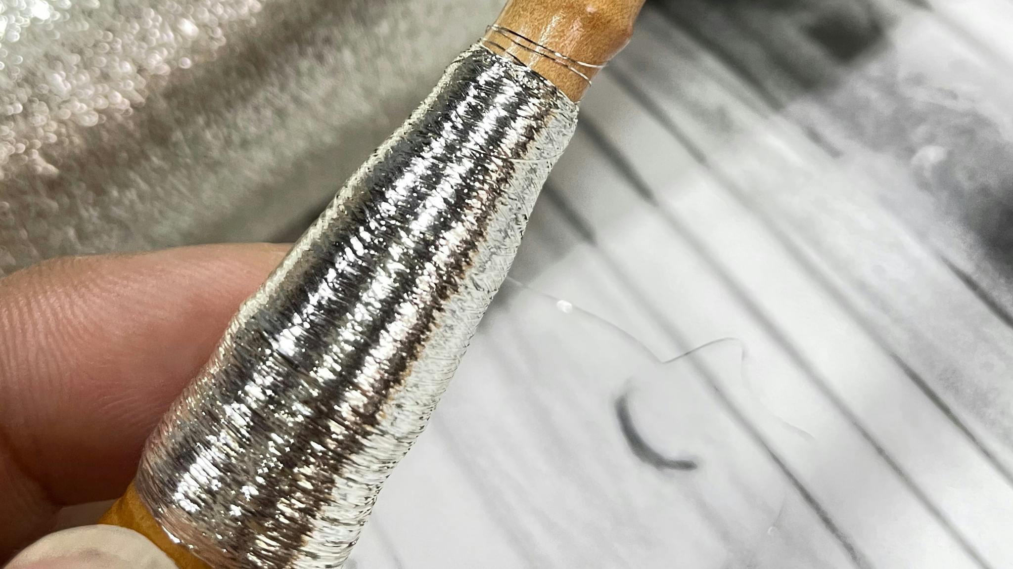 日本刀の特徴である金属風の生地を表現するため、縫取り部分の防染糸の役割を持つ緯糸(よこいと)には純銀をコーティングしたポリエステルの特殊糸を5〜10%採用。
