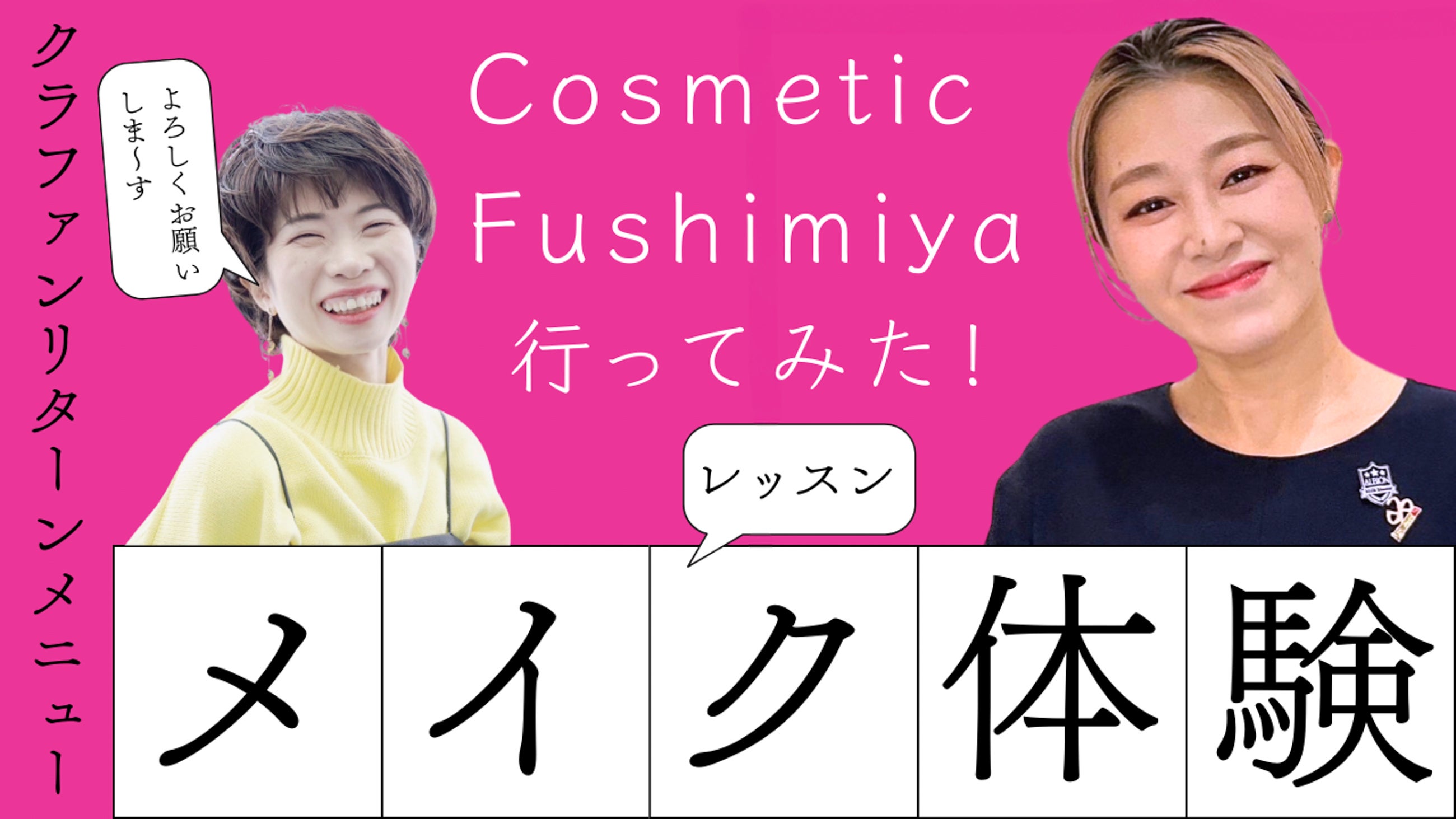 今回、リターンにご協力いただきました「CosmeticFushimiya」様のメイクレッスン30分体験行ってきました!・どんな事ができるの??・お店や店員さんの雰囲気はどうなの?そんな疑問を解消するために、私の身体ならぬ顔を張って体験してきたものを動画にしてみました!なんとなくお店の雰囲気を確認してもヨシ、普段のメイクの参考にしていただいてもヨシ!コスメを買わせていただく事はありましたが、本格的にレッスンを受けるのは初めてでしたので、実際に体験してみて、ちゃんとメイクする・お手入れするってこういう事なんだ~と実感しました。店員のひろみさんはママさんでもあり、とっても明るく軽やか且つ真面目だけど気さくな方。なんでもお話できちゃいます♪この機会に、メイクのお悩みも是非ご相談ください(^o^)丿