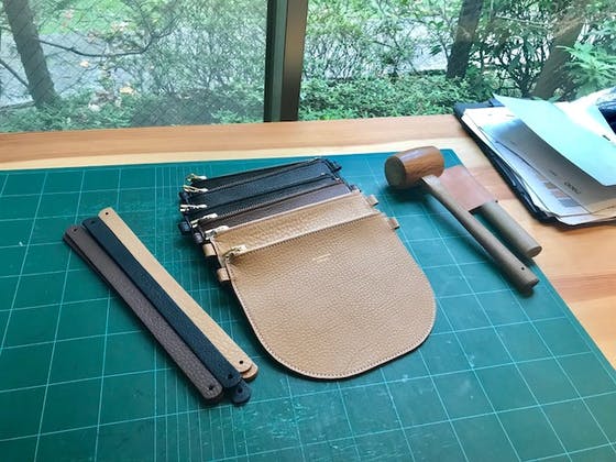 ファクトリーショップのオープンに向けて今日はレザーサコッシュの作成です。