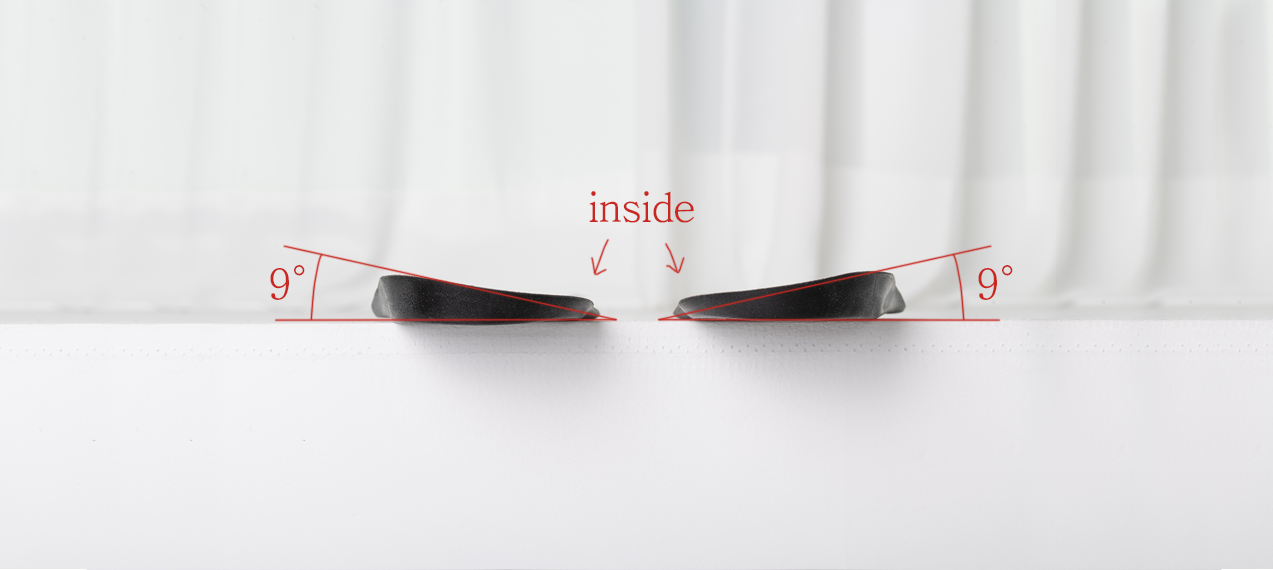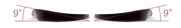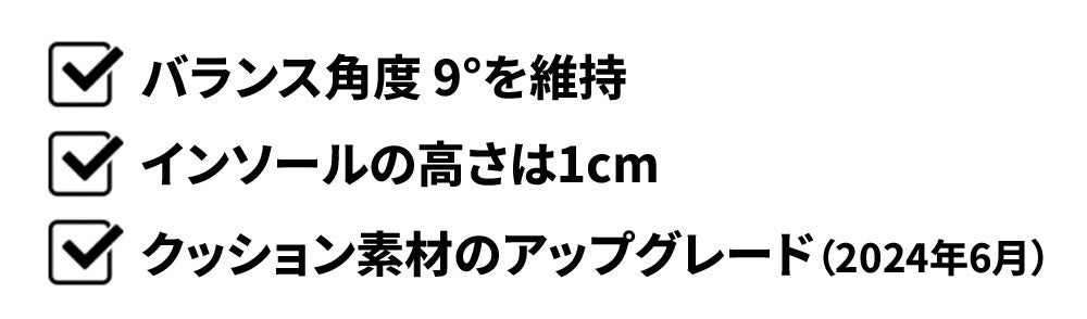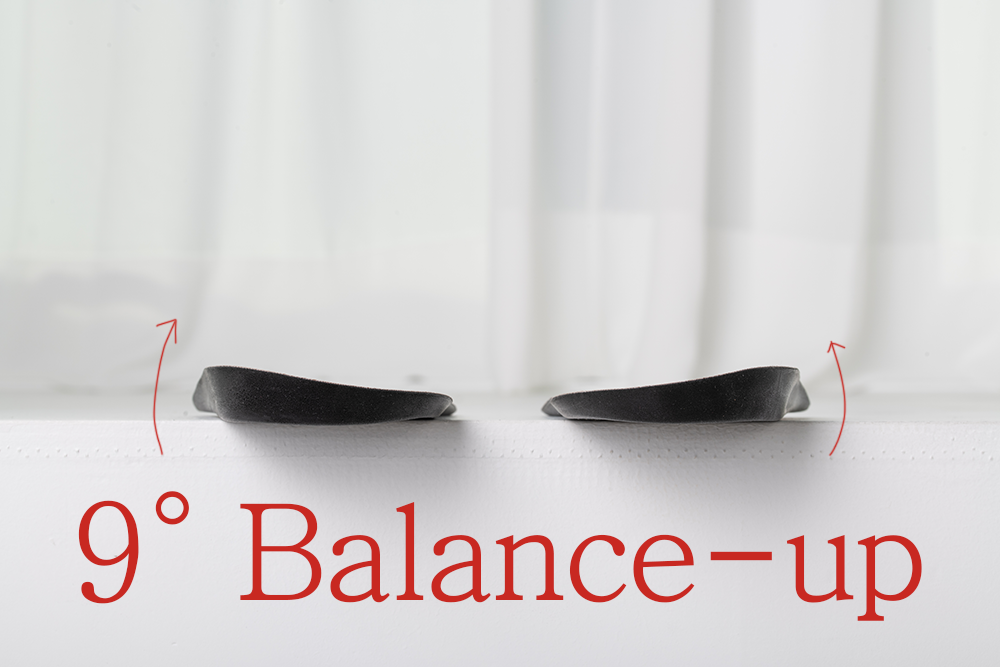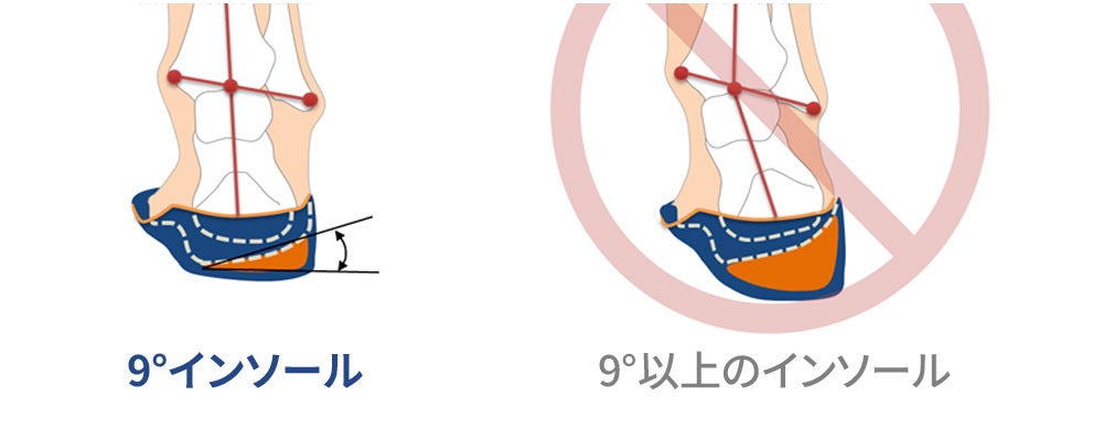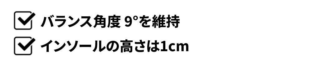 バランスインソール<9°インソール>は、足の指の圧迫感を軽減させるために、かかとのみのインソールで製作されました。