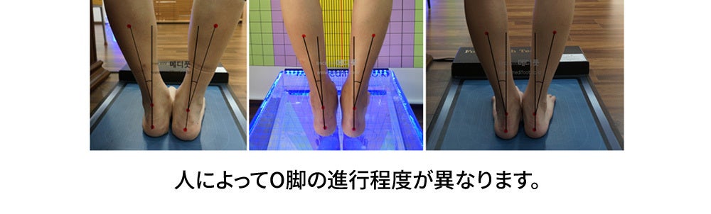 「進行程度が違う」という意味は、足部検査をした時に足首から膝まで広がった角度が個人ごとに違うように測定されるという意味です。