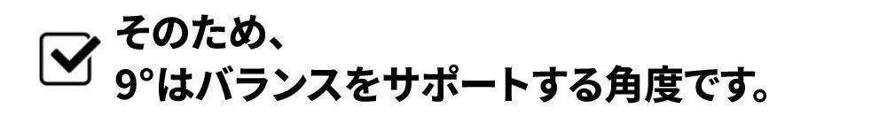 9°インソールは、内側から外側に9°のバランス角度を持つ機能性インソールで、リーズナブルな価格で手軽に使用できるよう開発した、機能性バランスインソールです。