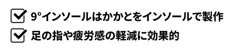 <9°インソール>機能性インソールのため、着用者の身体特性によって効果が異なることがあります。