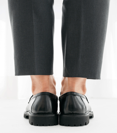 足が曲がっていると、足の重心が外側に集まり、内側の筋肉より外側の筋肉を多く使うようになり、靴の片方だけが磨耗します。 このような場合が続くと、全体的に体のバランスが変わることもあります。