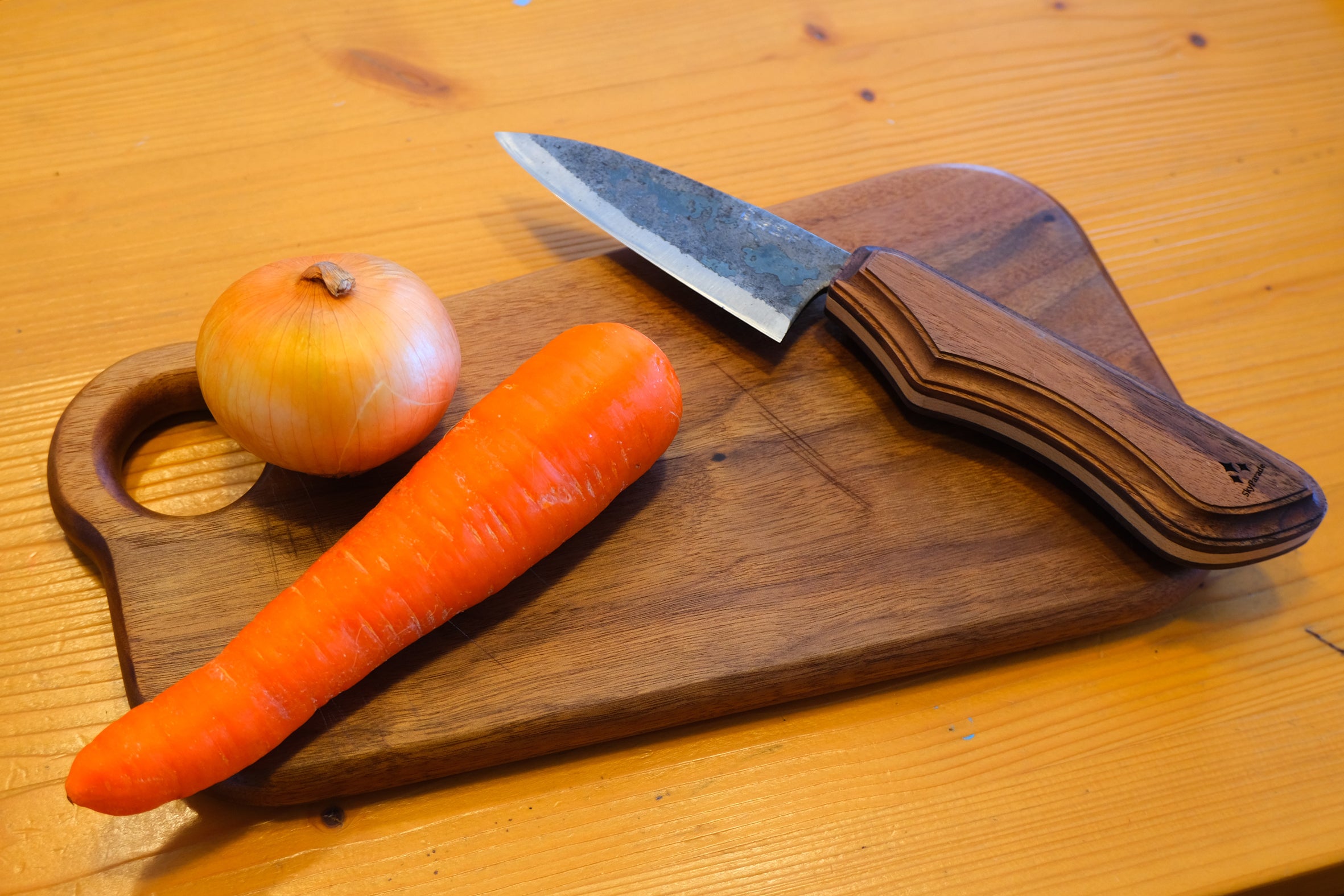キャンプでは小さなまな板やカッティングボードを使いますが、普通の包丁では大き過ぎる。アウトドアナイフで食べ物を切りたくない方もおられます。食材を切るのに適した小さい包丁はなかなかカッコいいものが売っていない。