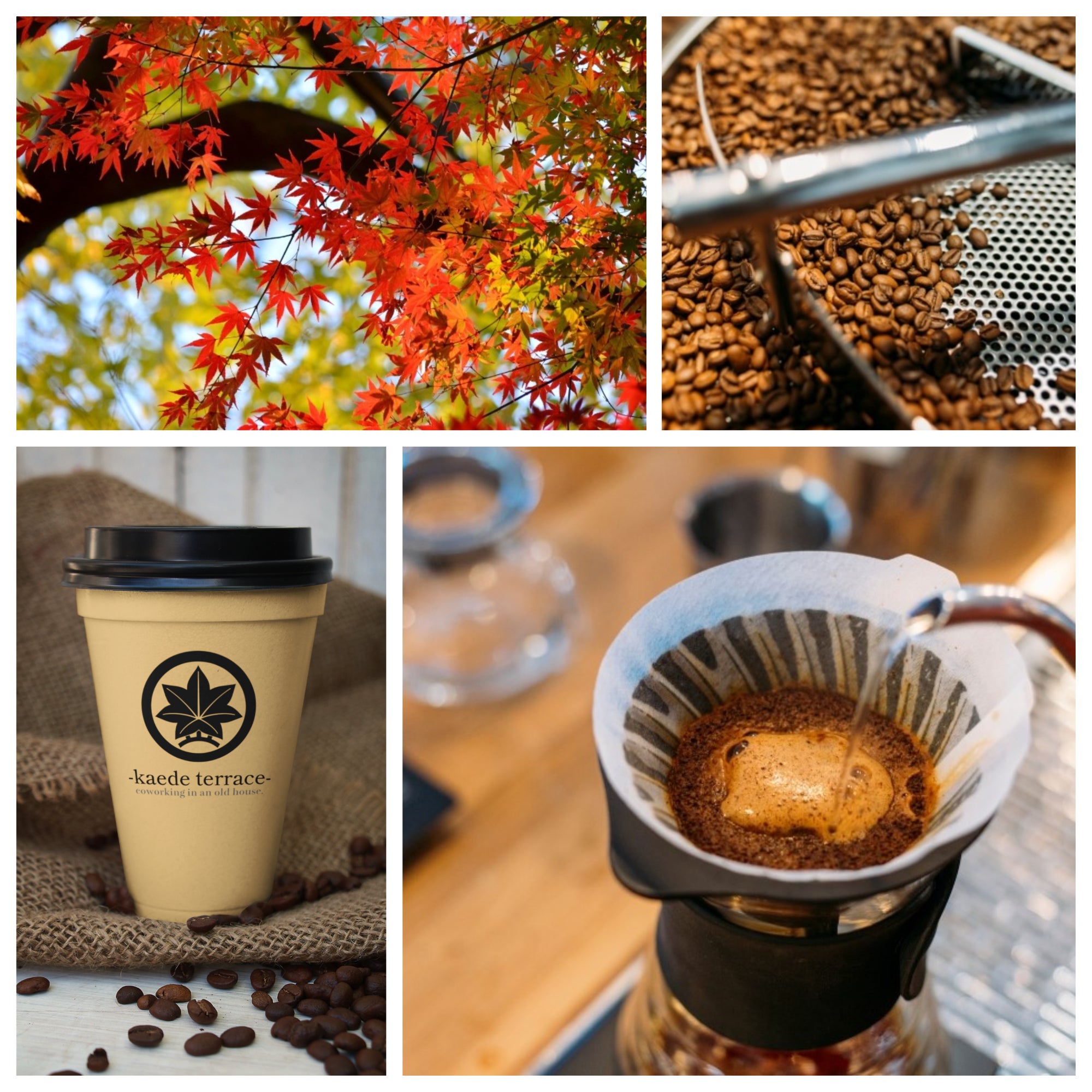 空間だけではなく、どうしてもこだわりたいのがコーヒーとスイーツ。コーヒーは丁寧に自家焙煎した有機栽培の豆を使用して、挽きたてをハンドドリップ。古民家の雰囲気の中で立ち込める薫りを存分に味わっていただきたいと思っております。また、スイーツに関してもスコーン・ケーキ・タルトなど季節ごとに旬のフルーツを使用し、食品アドバイザー監修のもと無添加で仕上げます。