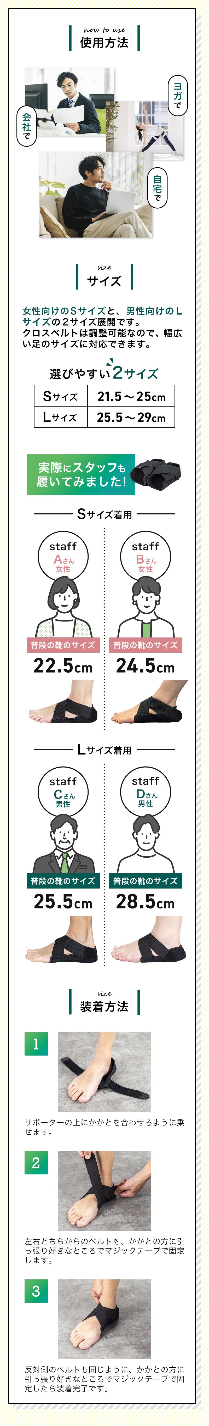S(21.5cm〜25cm)L(25.5cm〜29cm)に対応しています。
