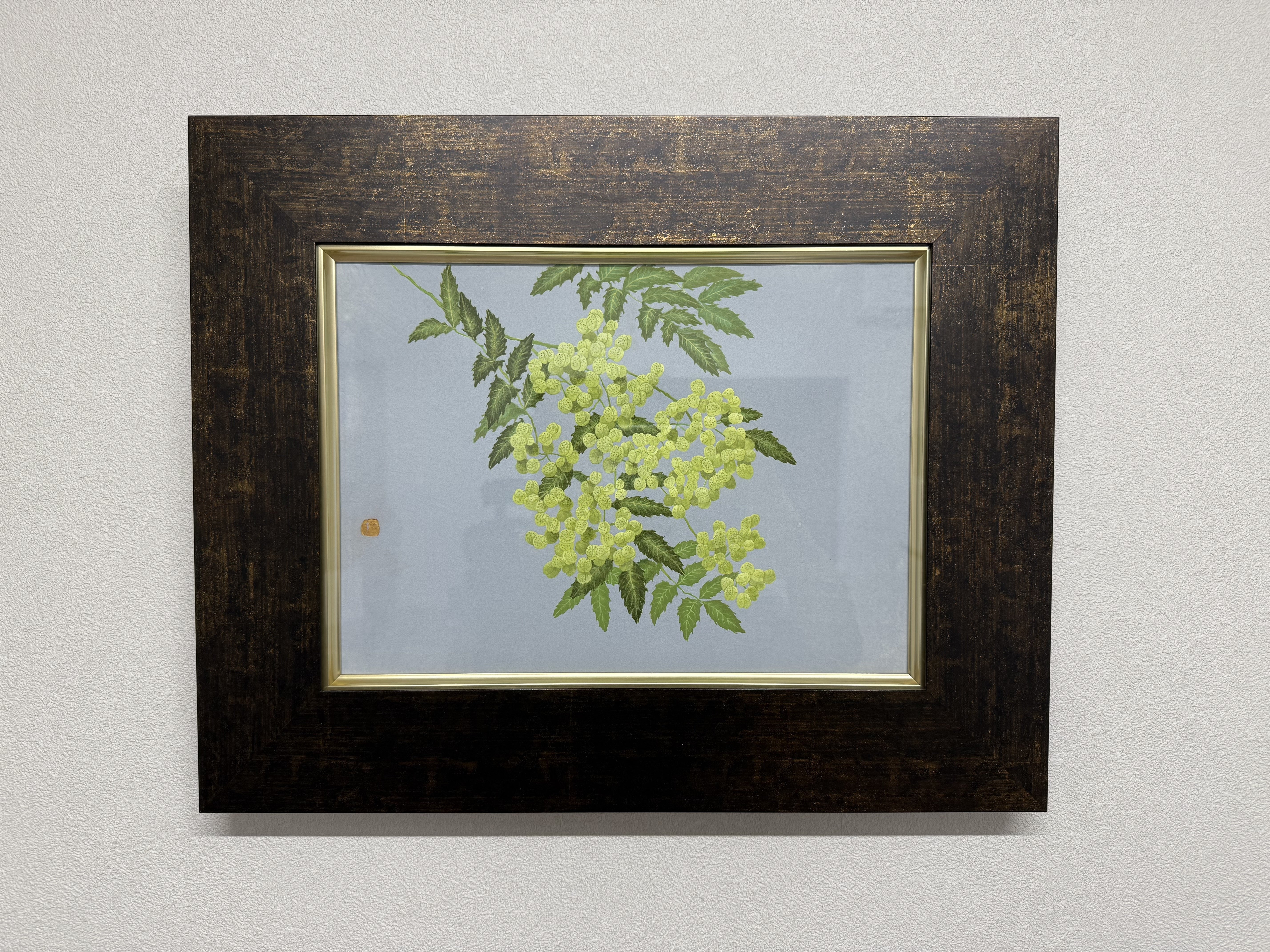 おはようございます!!篠畑農園です!ついにスパイスのラベルデザインが完成しました♪今回はそのデザインに使用された日本画が届きましたのでお披露目です。この日本画が持つ独特の雰囲気がすばらしいですね!事務所の一番目立つ所に飾りました。実際のパッケージや商品はまだ届いておらず、完成は月末から11月頭になる予定です。そこから発送準備などを行いますので発送は11月中旬から下旬の予定です。商品の完成、発送まで今しばらくお待ちください。
