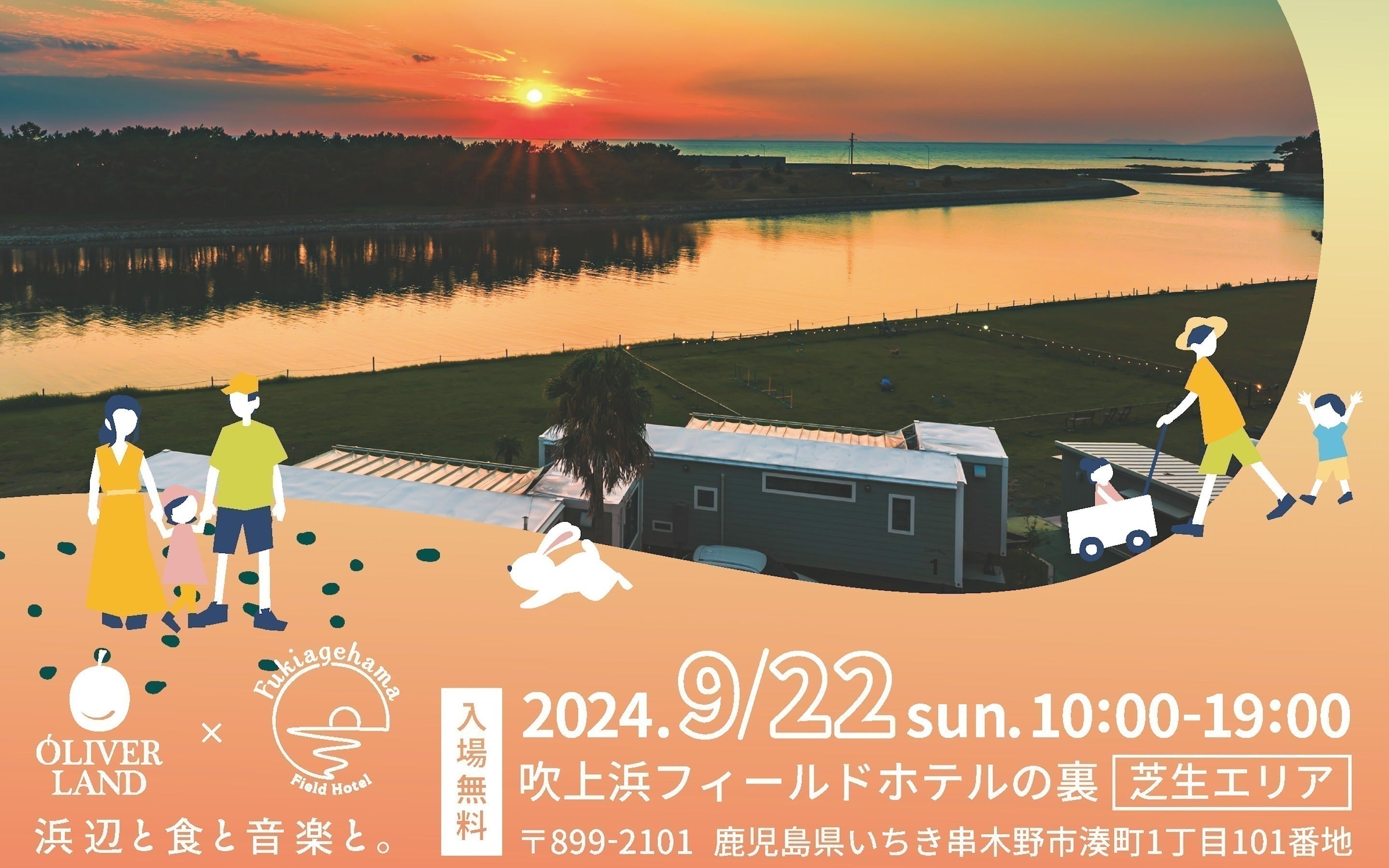 今年9月22日、鹿児島県いちき串木野市で特別な一日を計画しています。この美しい地域で「地方に夢を、鹿児島をつくろう」という想いをもとに、一日限りの無料イベントを開催します。会場は、海と砂浜が隣接する自然豊かな吹上浜フィールドホテルの芝生エリアです。