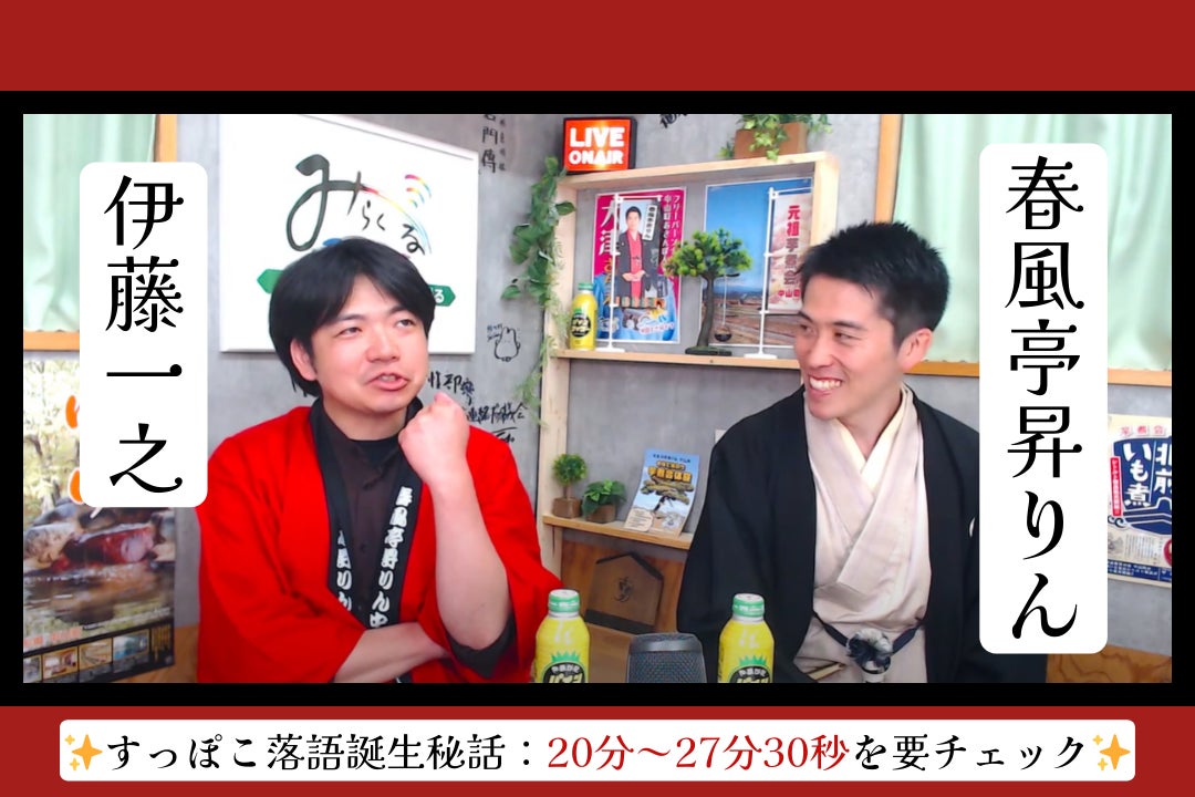 ~みらくるラジオなかやま~2024年5月24日(金)にて、春風亭昇りんさんご本人に、すっぽこ落語の誕生秘話を語っていただきました。すっぽこ落語の誕生には、師匠春風亭昇太さんのアドバイスもあったようで。。。詳しくはアーカイブ動画の20分~をご覧ください。すっぽこ再興!!では、すっぽこを文化として永く残すために、食べ物としてだけでなくすっぽこを物語、ストーリーとして残す取り組みを同時並行で行っていきます。そこで山形県中山町出身の落語家春風亭昇りんさんにご協力をいただいております。今後の活動にもご注目ください。食べ物として、ストーリーとして、どちらも面白い。やっぱりすっぽこは最高です。