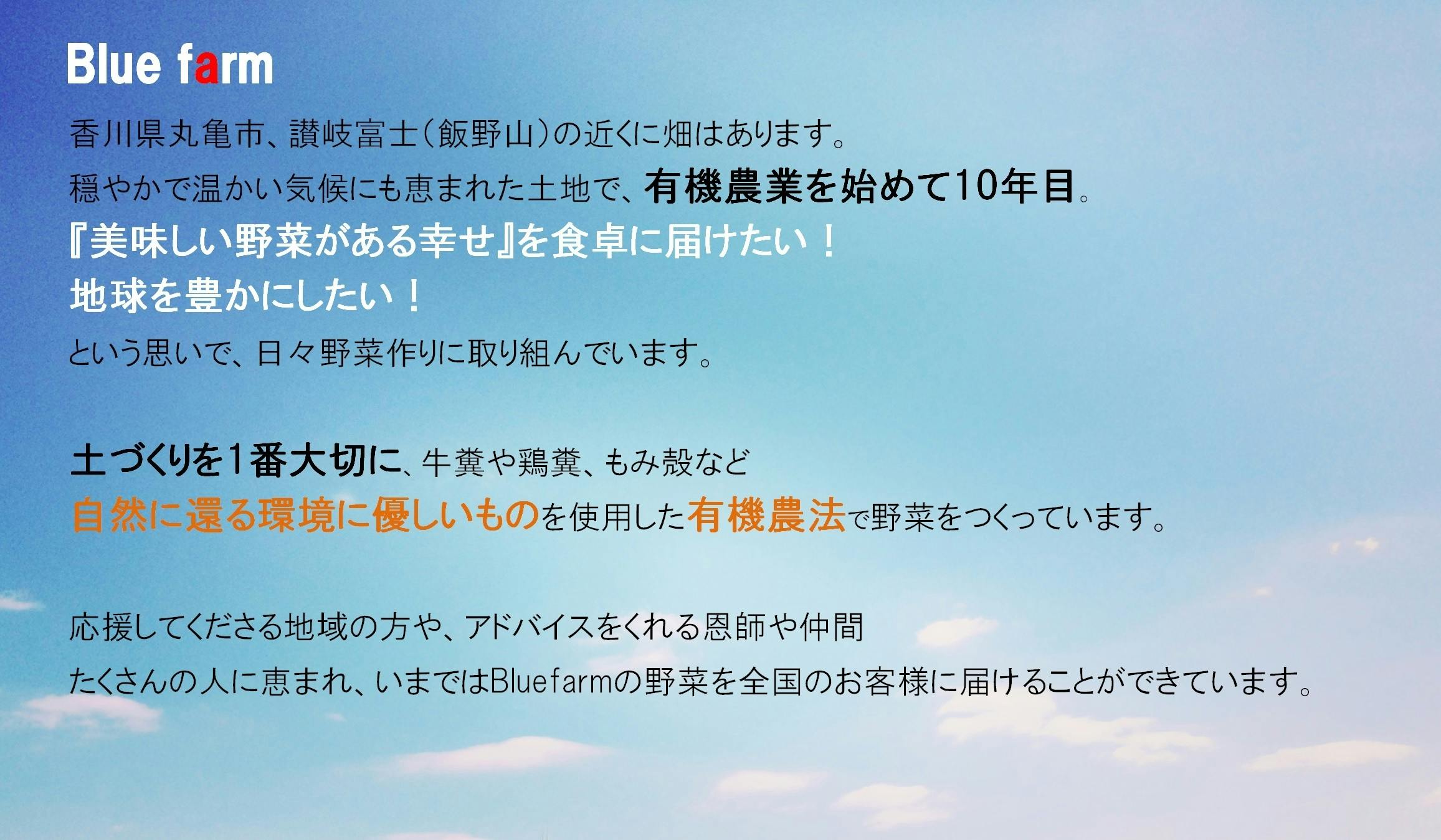 私たちは香川県丸亀市で有機農業を営む、Blue farm(ブルーファーム)と申します。