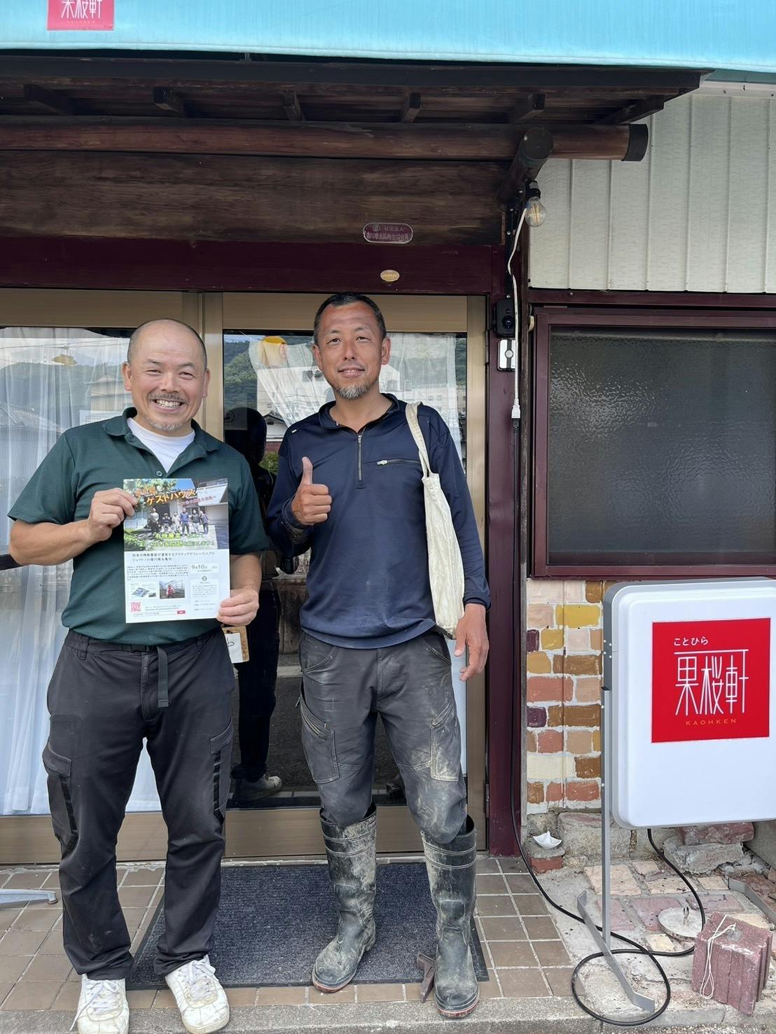 今回はことひら果桜軒さんにチラシを置かせて頂きました。果桜軒さんの店主東川さんとはお店をオープンした2020年7月の少し前の5月に私達の農園にお手伝いしに来て下さってからの付き合いになります。いつも明るく元気な方で、常にパワーに溢れている人で、今回もそのパワーを少しお借りしました(^_^)