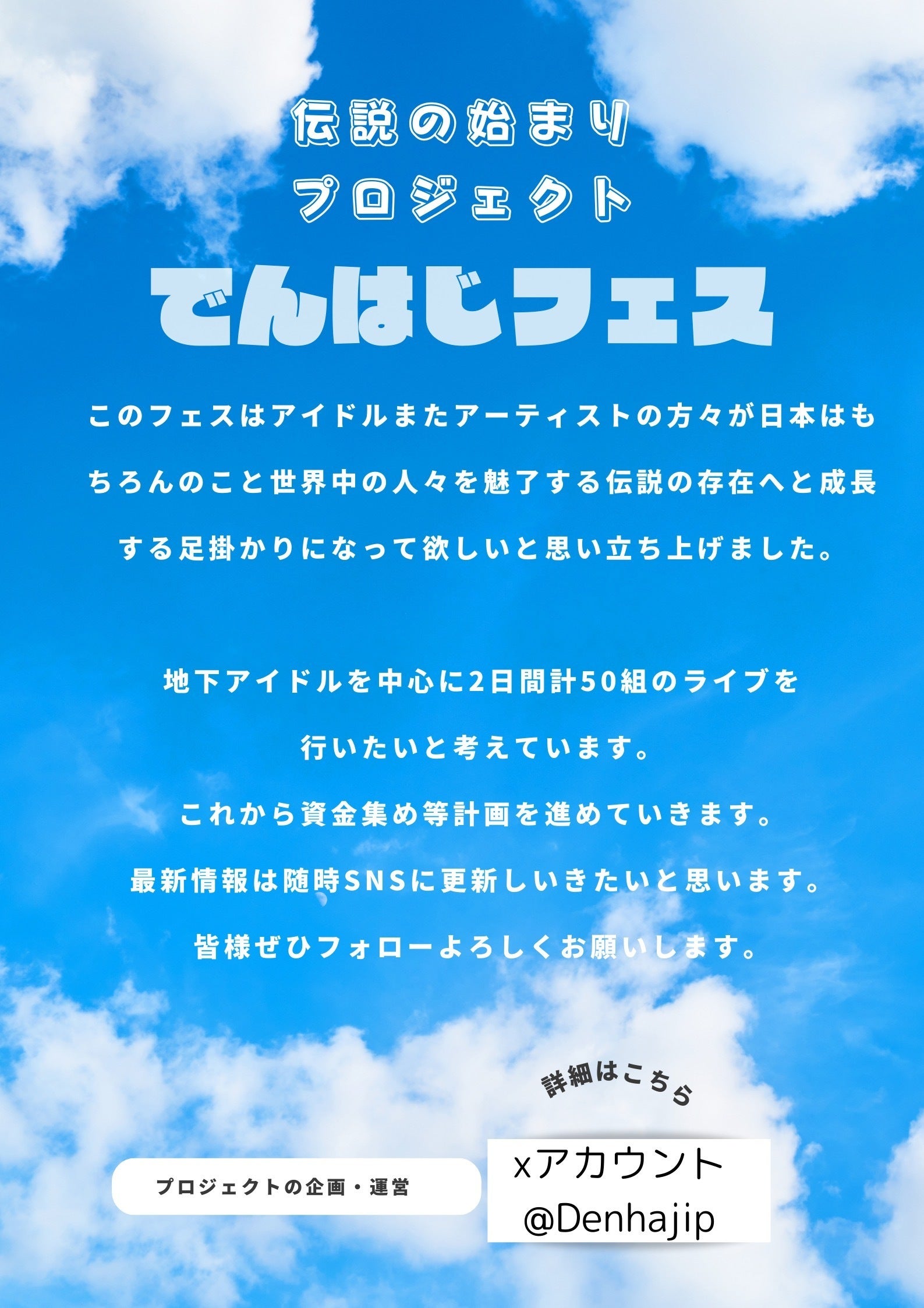 このプロジェクトを通じて、地下アイドルたちに新たな光を当て、彼女らの夢を現実のものとするための支援をお願いします。私たちと一緒に、忘れられないフェスを創り上げていく旅に参加しませんか?あなたの温かいサポートが、アイドルたちにとって大きな力となります。ご支援、心よりお待ちしております。