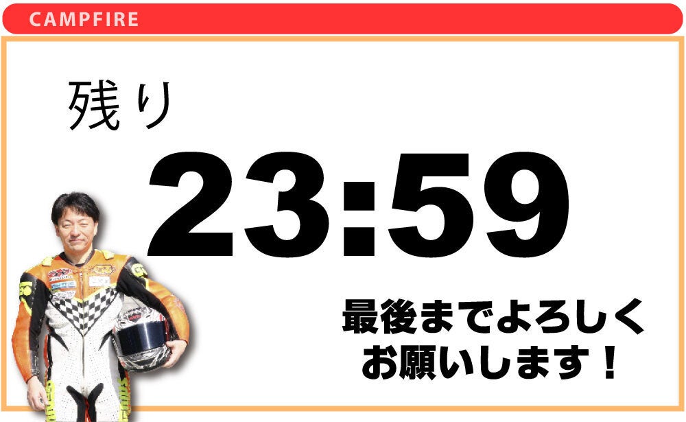 本日第3戦の決勝が行われました。昨日から続いた雨が止まずレインのレースに!天気予報では今日は曇り予報、、、結果はライバルのヨンジュン選手と1周目から激しい1位争い!!しかし、11周目にヨンジュン選手が、1コーナーをブレーキングミスで後退、1位確定かと思いましたが、2位の選手に最終ラップ最終コーナーで、抜かれて結果0.044の差2位でフィニッシュ(涙)ここまで3戦終わって1位1回2位2回とランキングは現在TOPです!!残り3戦しっかりと最後まで戦いたいので、残り数時間ですが、ご支援、応援よろしくお願いします!◆あと残りあとわずか!目標金額にはまだまだですが、頑張って最後まで走り切ります、応援よろしくお願いいたします。------------------------------------目標金額:100万円------------------------------------達成率:34%------------------------------------支援総額:34万2千円------------------------------------支援者数:37名------------------------------------プロジェクトURL https://camp-fire.jp/projects/view/760779【55歳韓国でオートバイレースのシリーズチャンピオン目指す !】応援ご支援よろしくお願いいたします。谷野