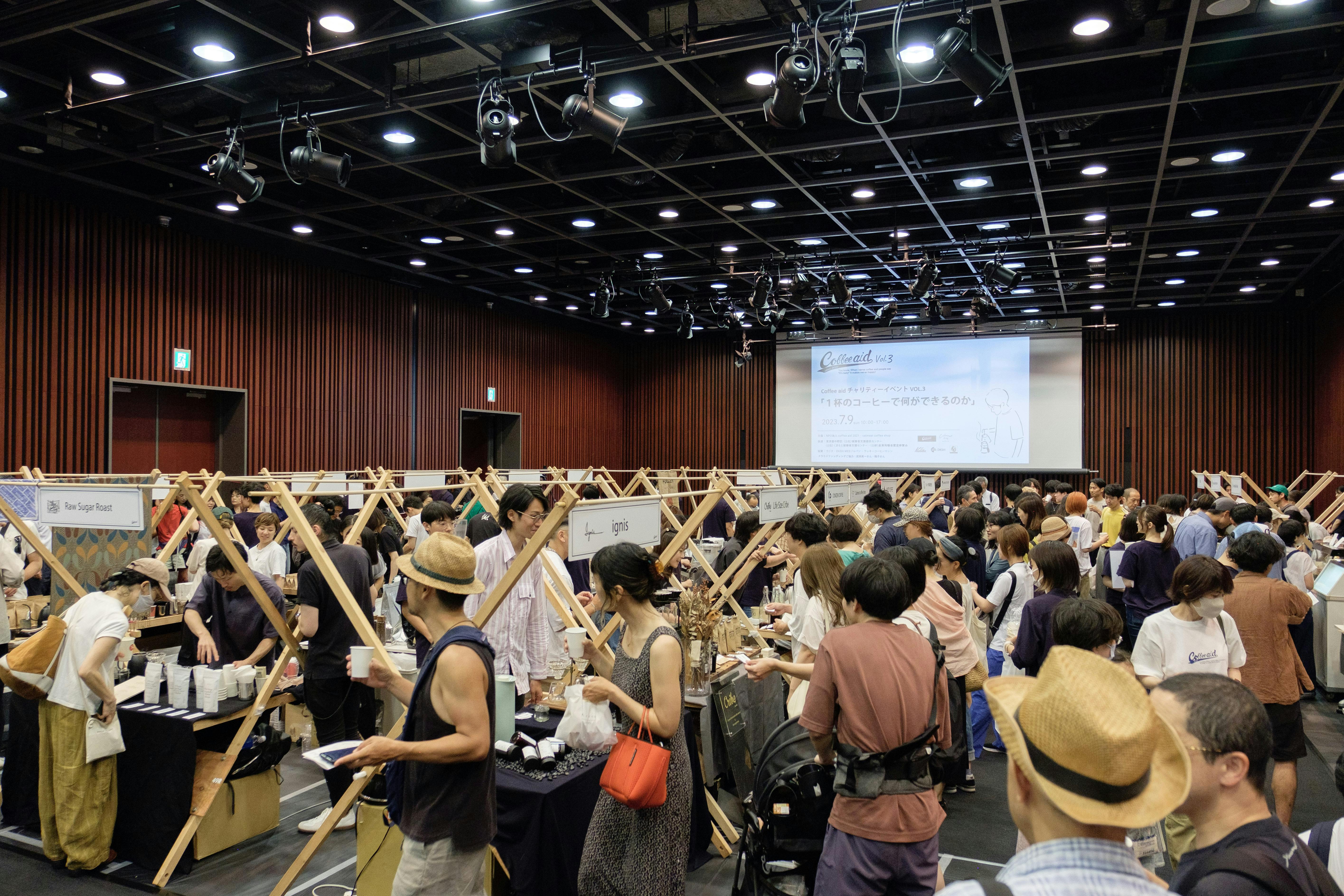 各有名ロースターやコーヒーショップに出店していただき、エアロプレス大会と併せてコーヒーエイドチャリティーイベントとして開催しました。