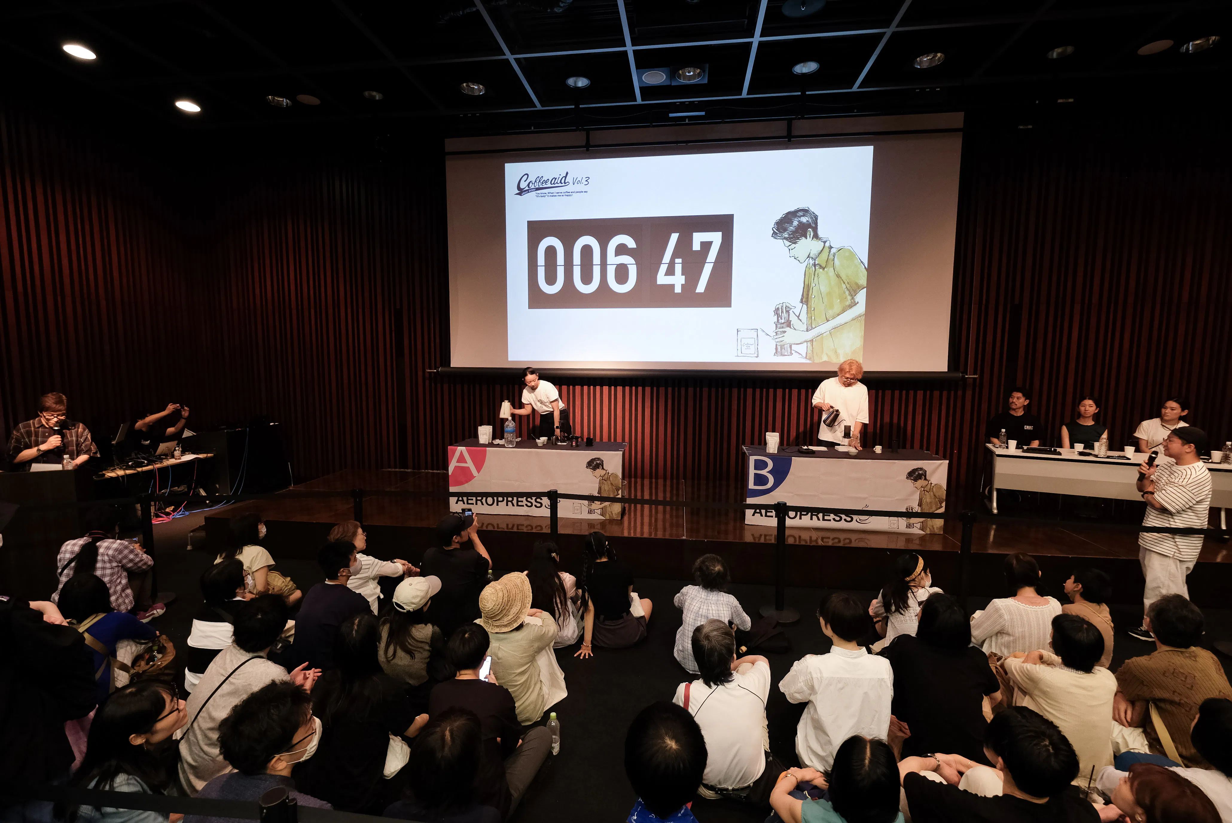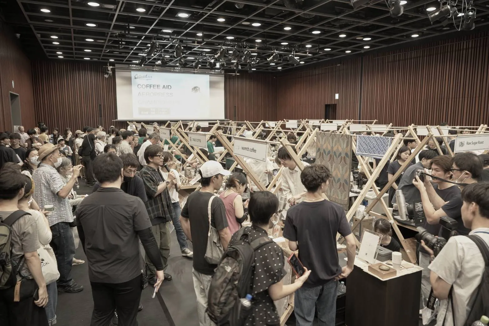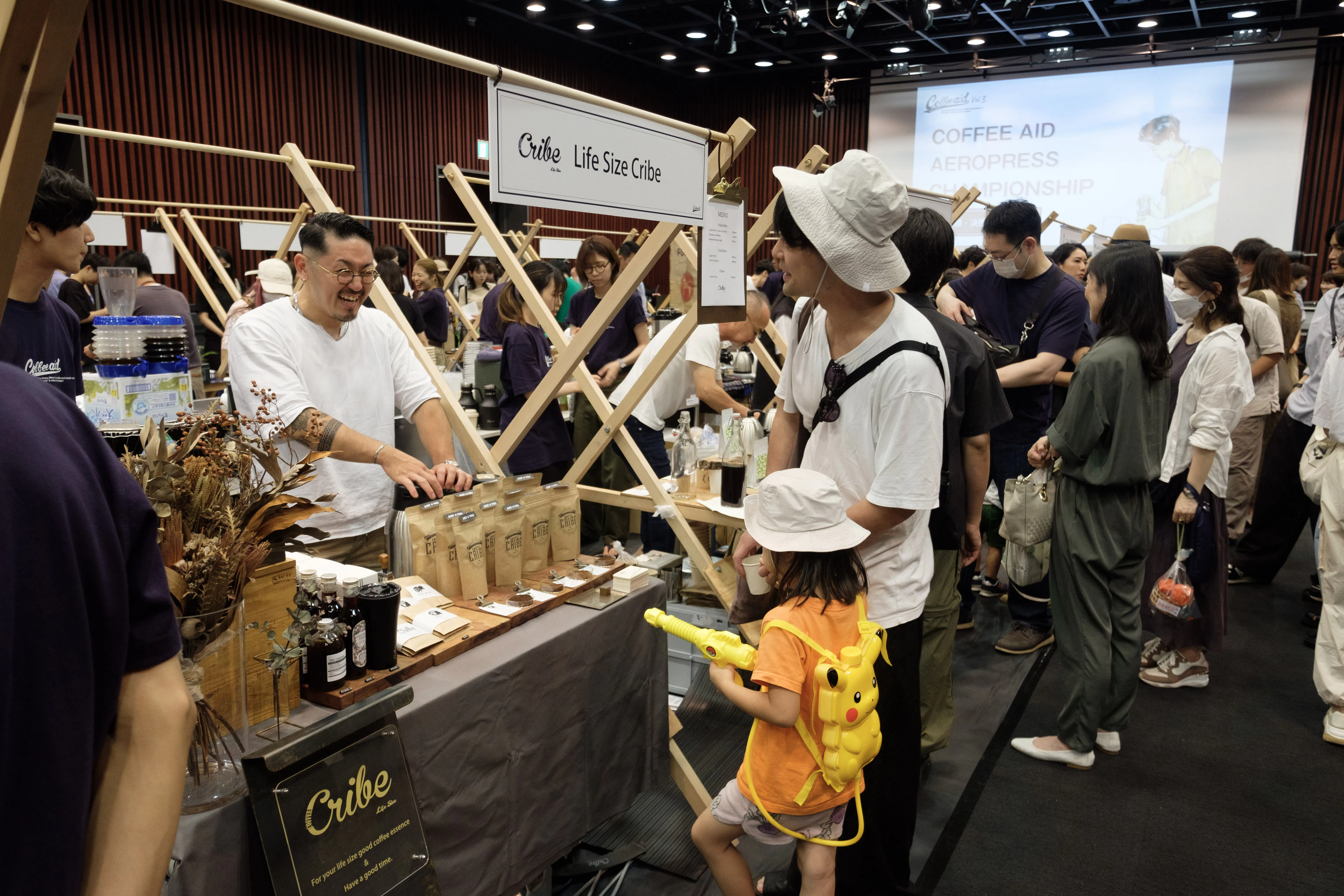 各有名ロースターやコーヒーショップに出店していただき、エアロプレス大会と併せてコーヒーエイドチャリティーイベントとして開催しました。