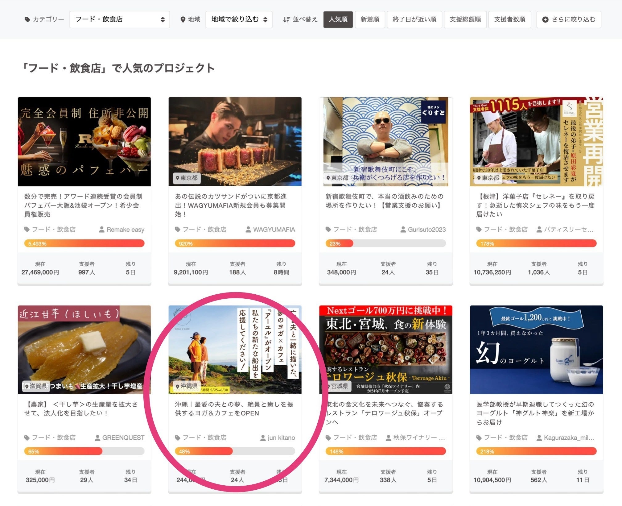 現時点で、フード・飲食店カテゴリの人気上位のプロジェクトとして掲載していただいています。